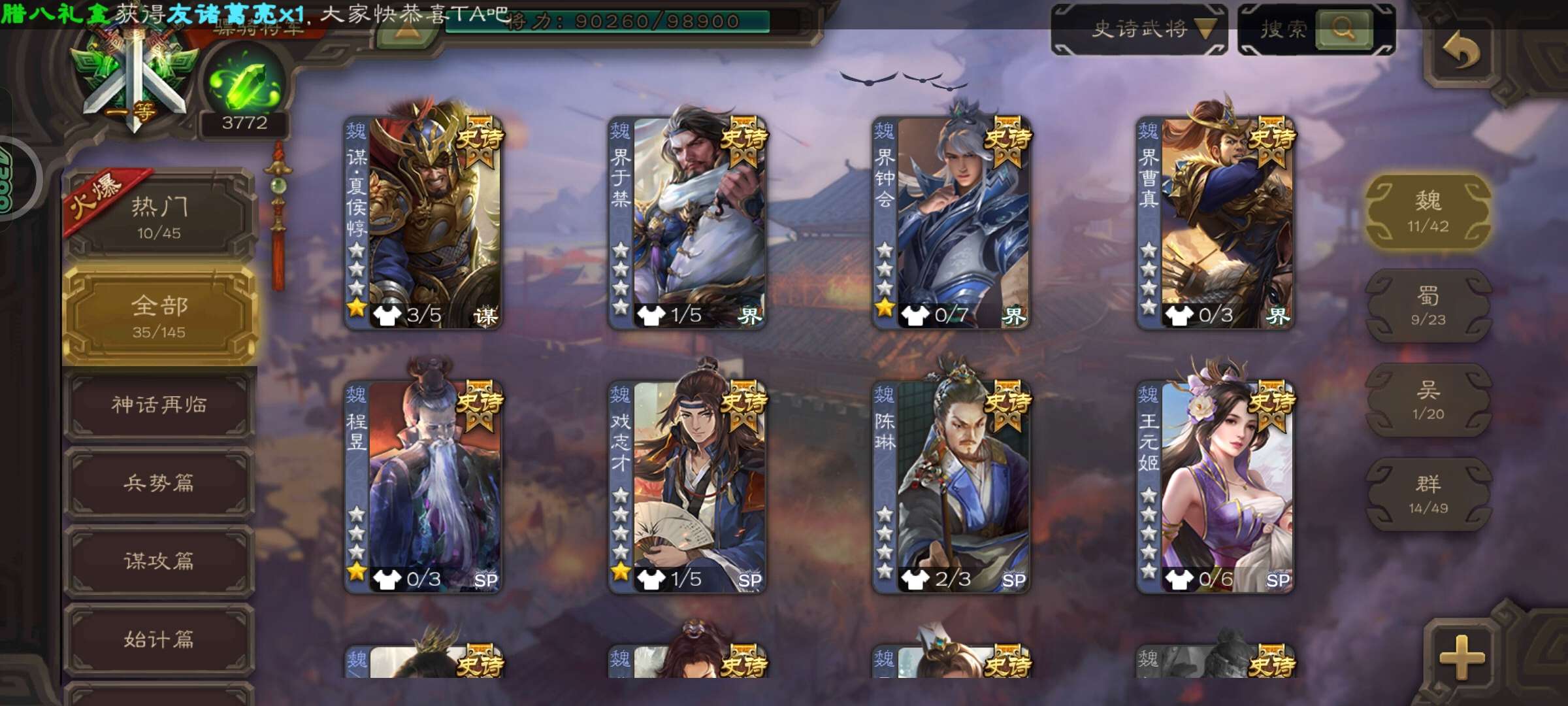 史诗武将数量:
