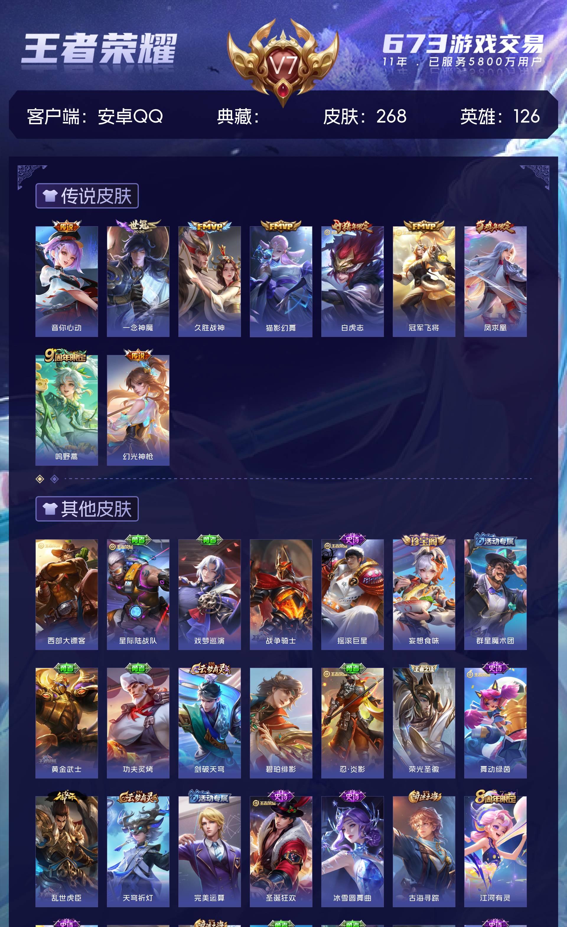 V7 皮肤268 英雄126 尊贵铂金 传说9