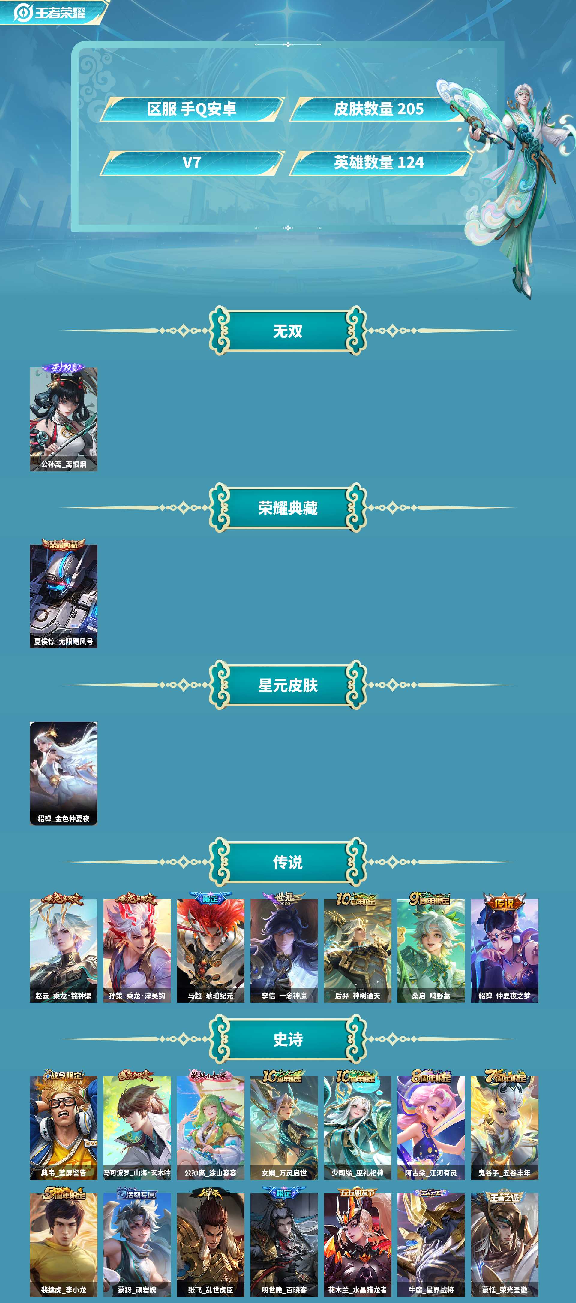 离恨烟!飓风号!双乘龙!皮肤数量205印记总数10V7至尊星