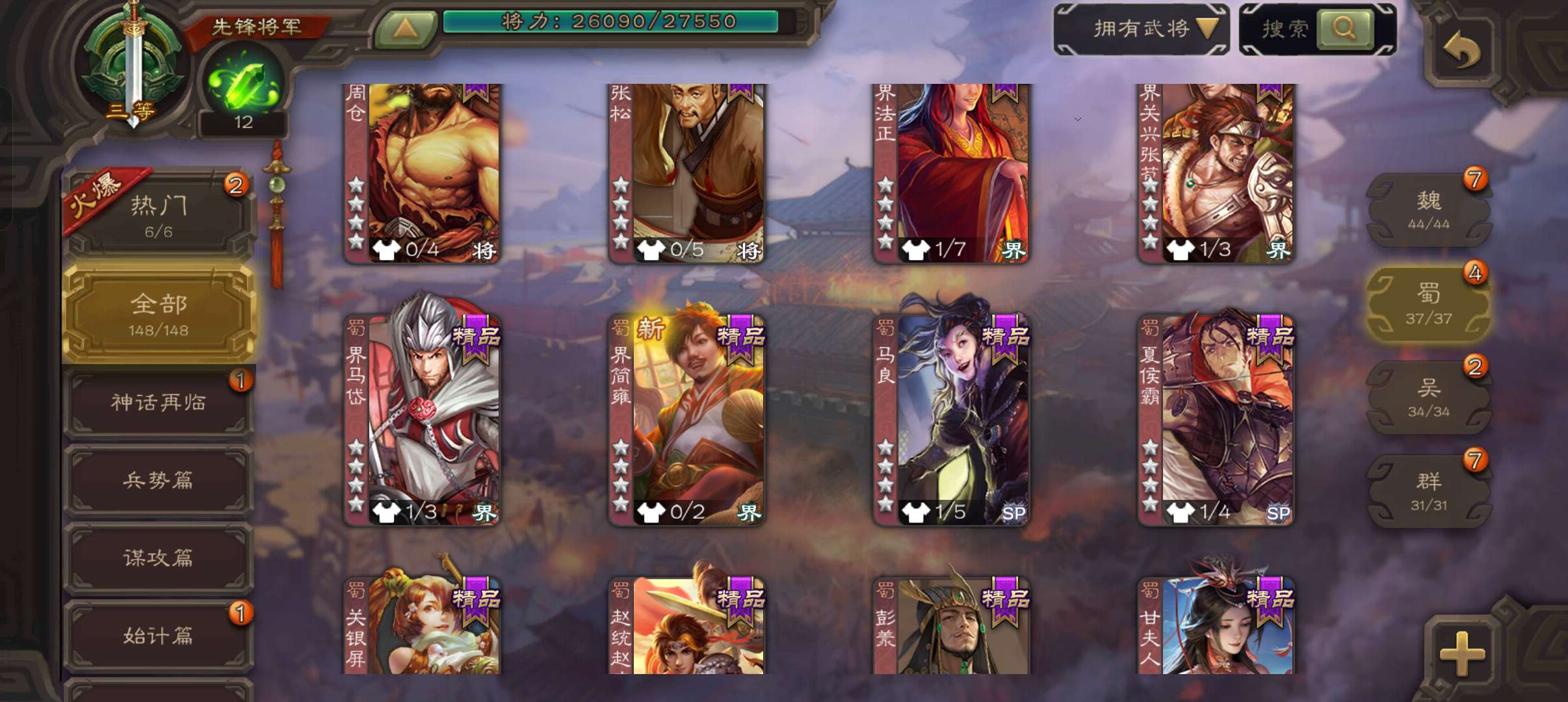6万豆,真动态界左慈神赵云界黄忠3史诗先锋,神周瑜关银屏甘夫人谋韩当谋高顺势陈到148将