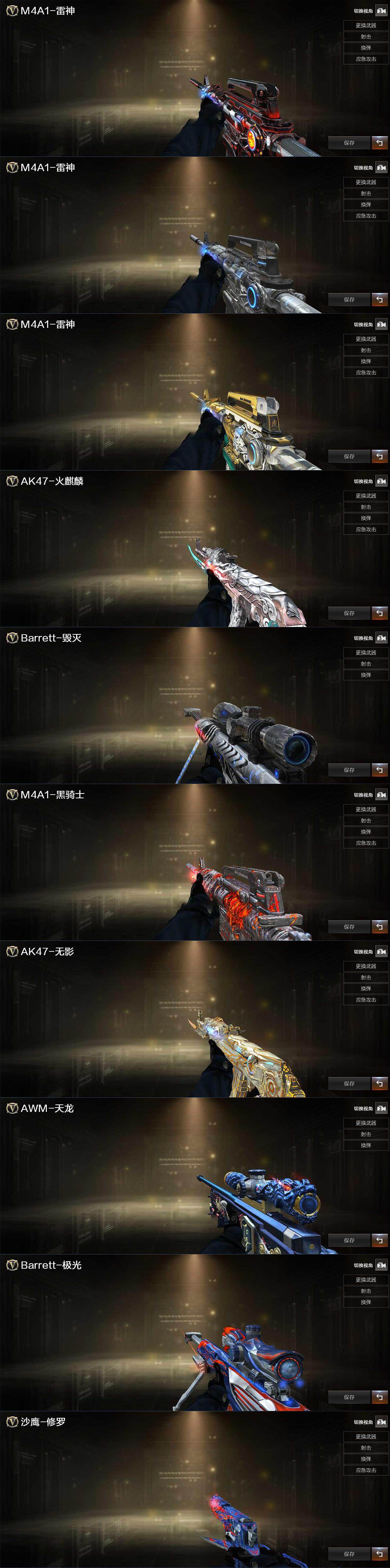 【音效卡】:AK47-火麒麟音效卡,M4A1-雷神音效卡,M4A1-黑骑士音效卡,Barrett-毁灭音效卡