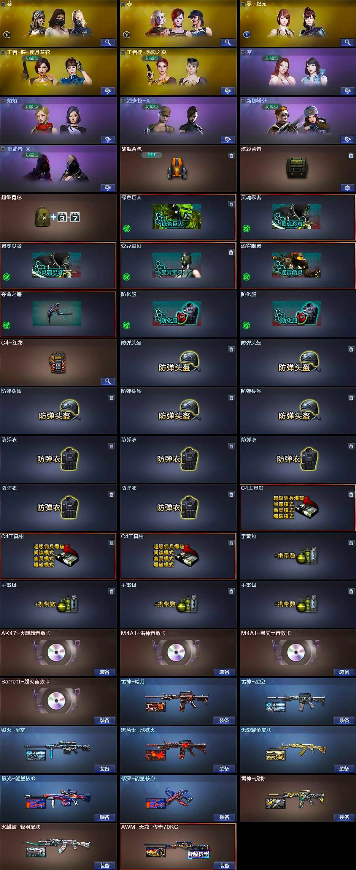 【皮肤】:雷神-暗月,雷神-星空,雷神-虎将,火麒麟-轻羽皮肤,毁灭-星空,黑骑士-地狱火,无影耀金皮肤,AWM-天龙-传奇