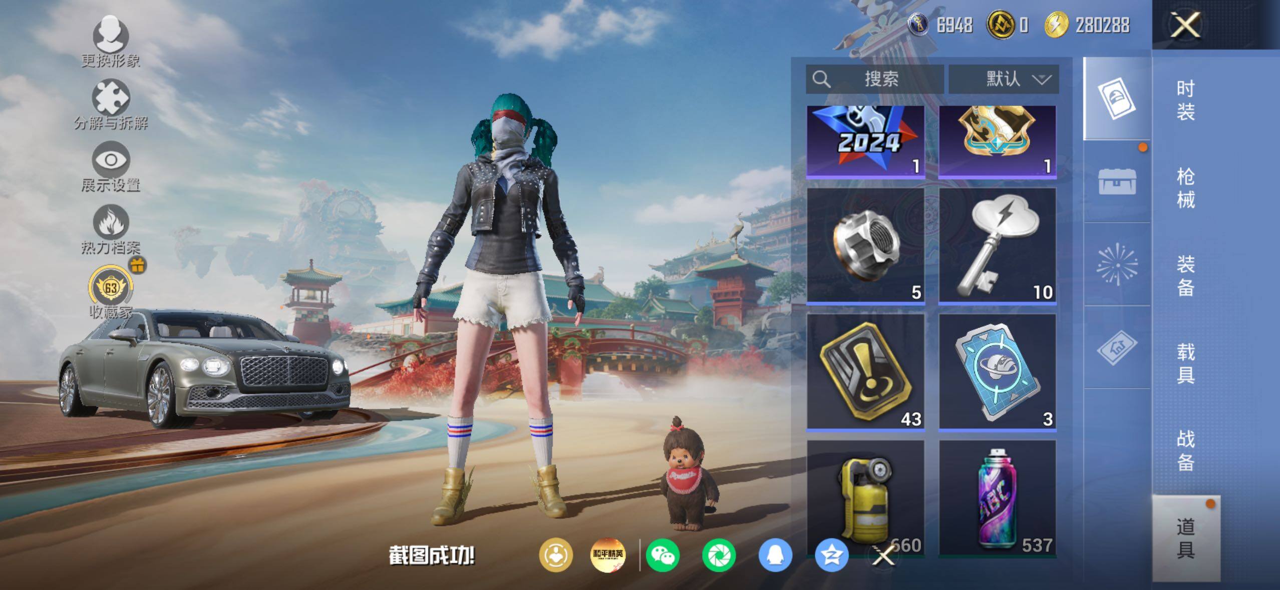 苹果 手Q-5粉装-6特效枪-1载具-3粉色飞行器-57548热力值-13王牌