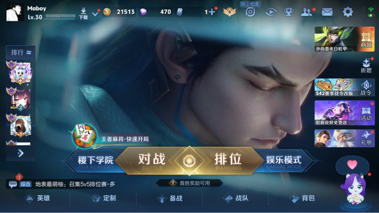 问心剑!韩信典藏!2马年!皮肤数量209印记总数11V7荣耀