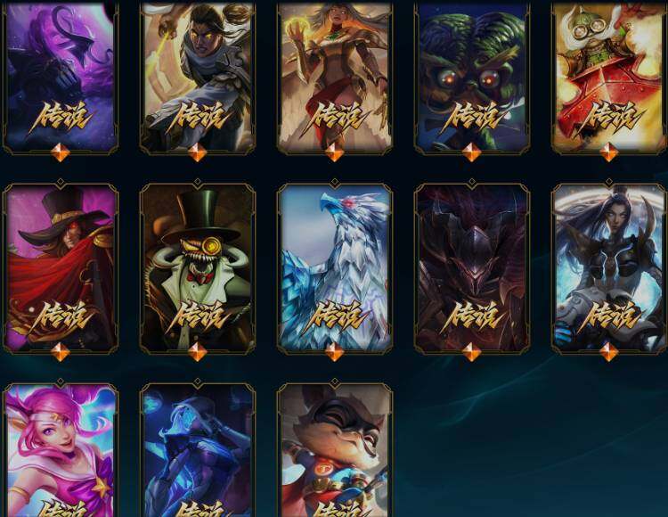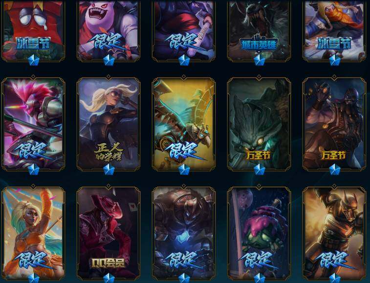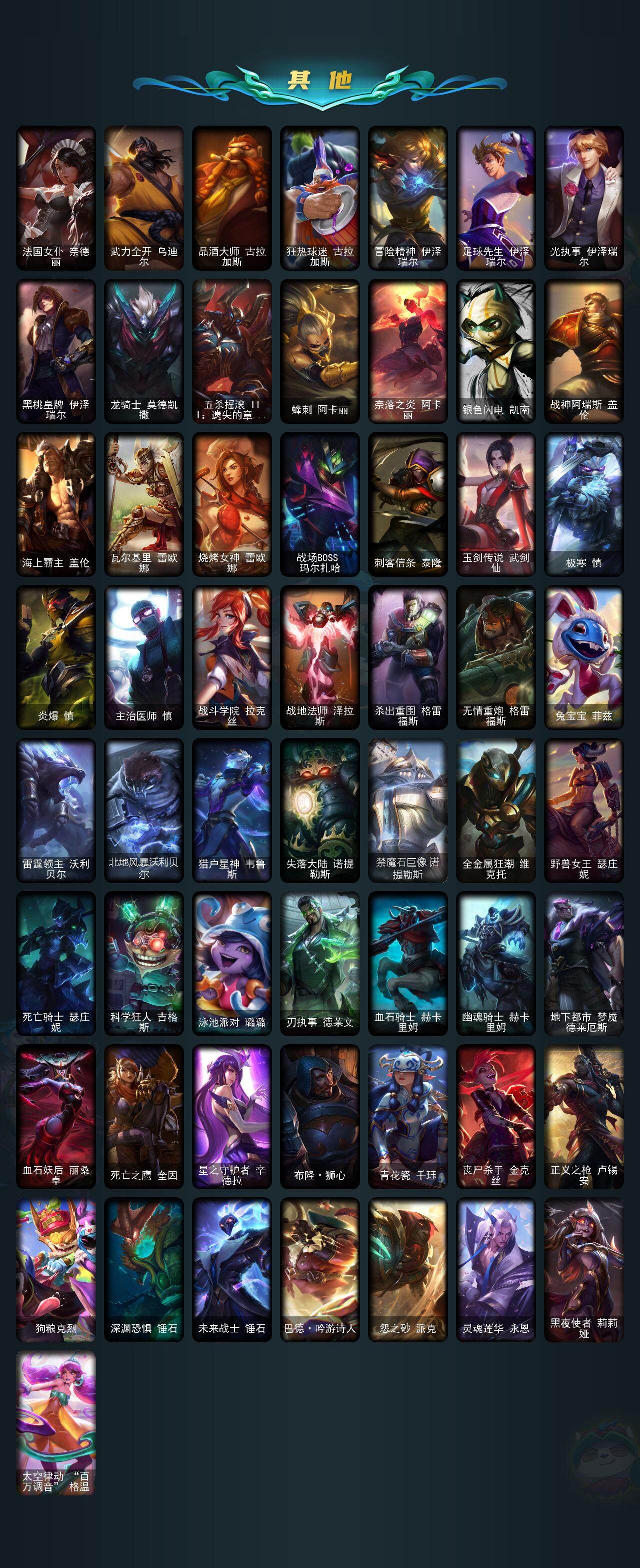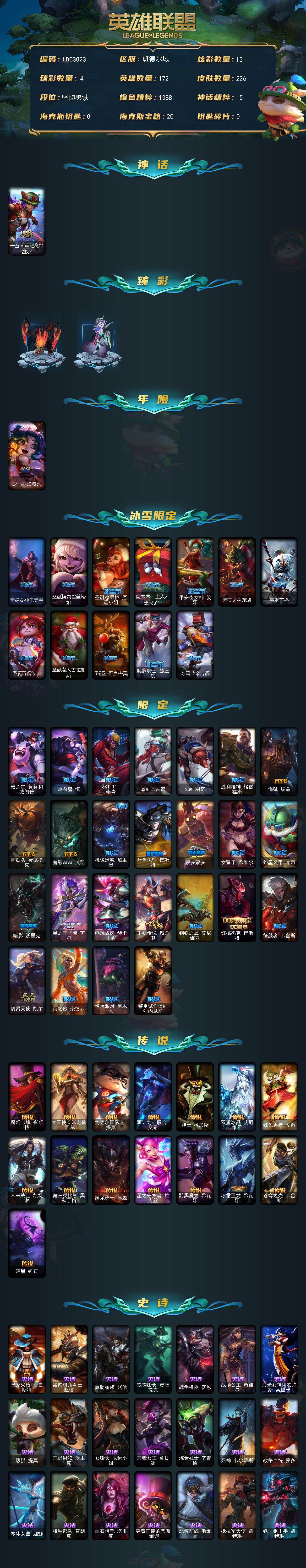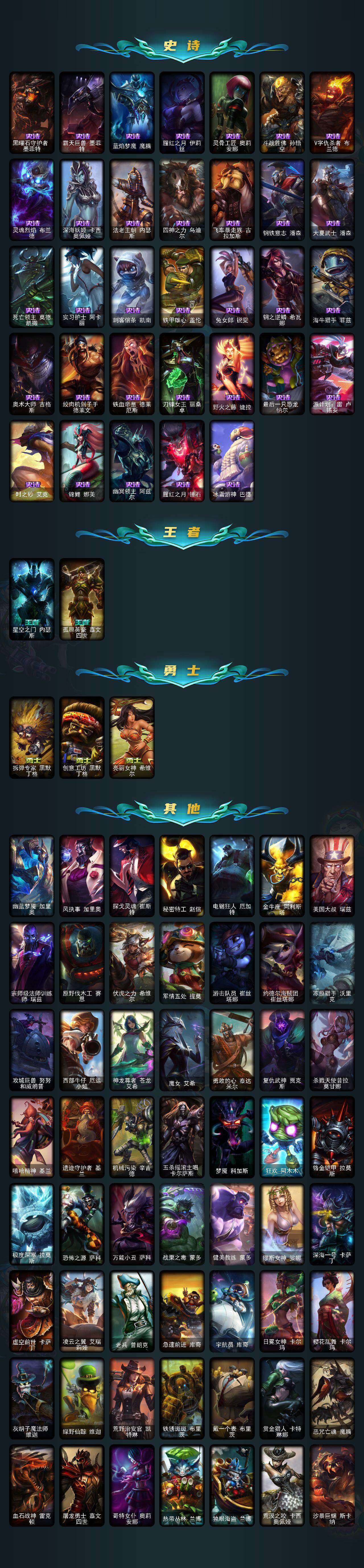 172英雄/226皮肤/1神话/38限定/4臻彩/13炫彩/15传