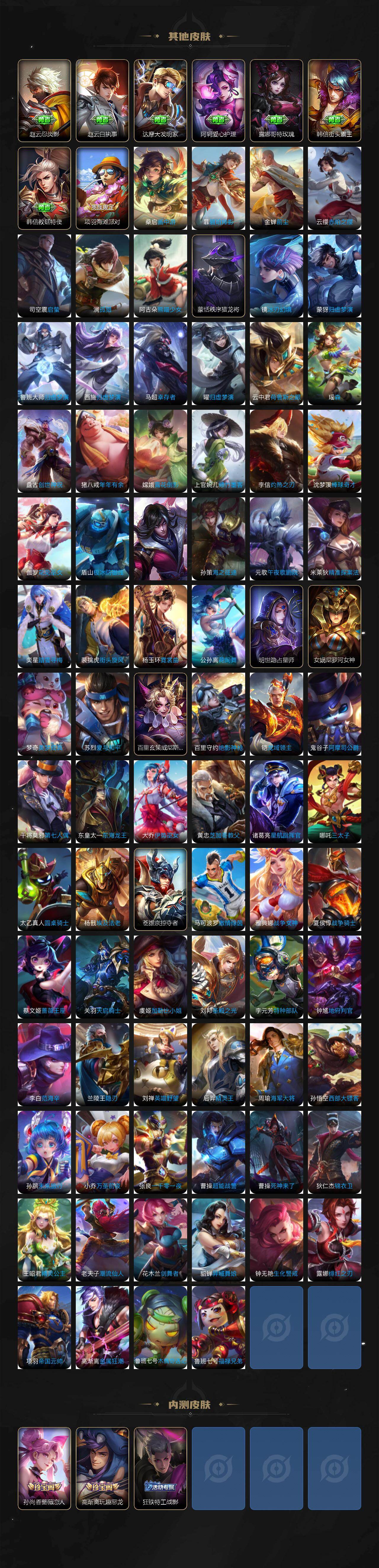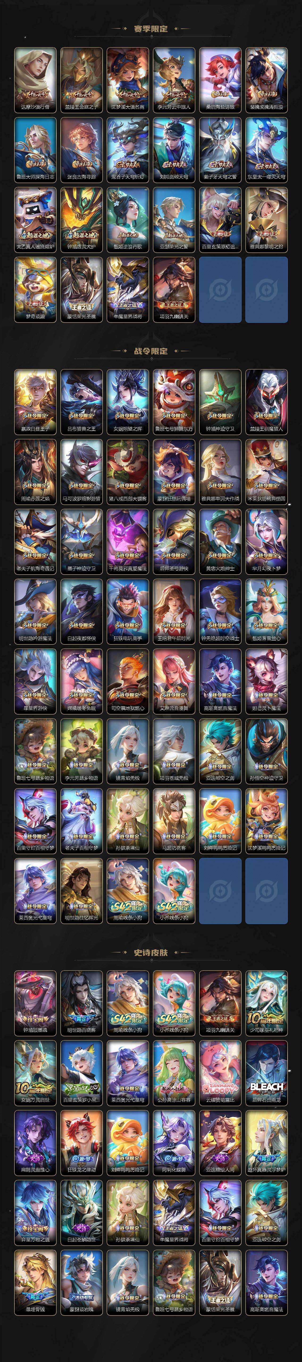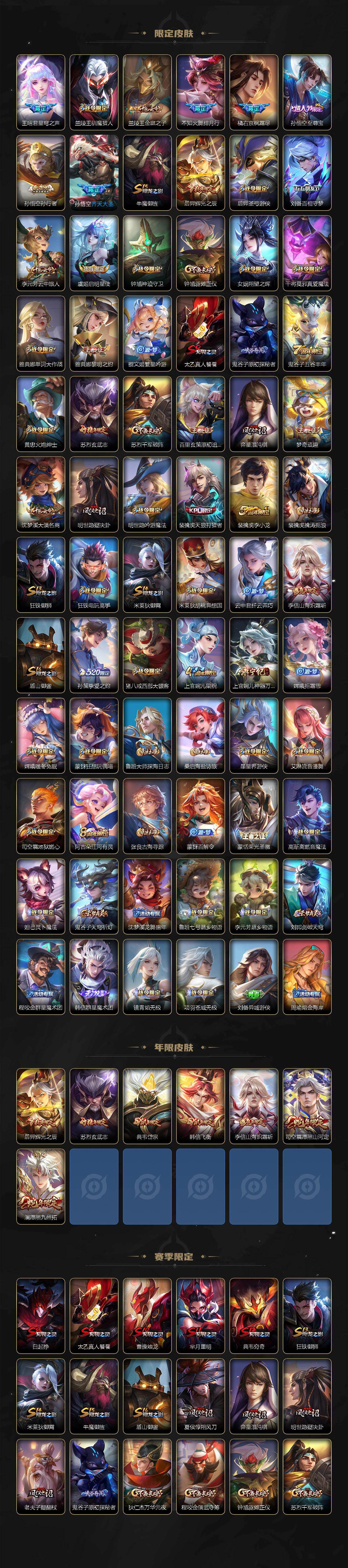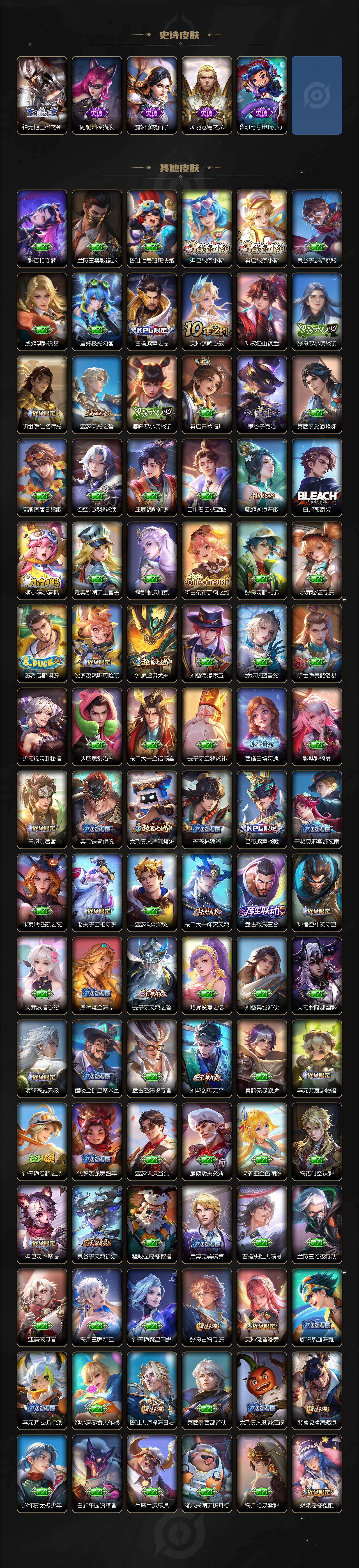 【英雄全皮】:白起全皮,孙权全皮,橘右京全皮,钟馗全皮,鬼谷子全皮,苏烈全皮,狂铁全皮,敖隐全皮,司空震全皮,空空儿全皮,影全皮