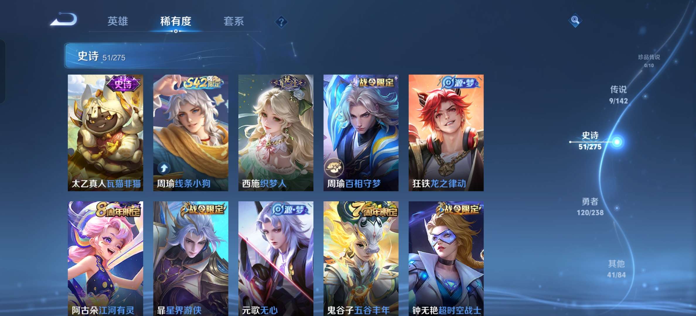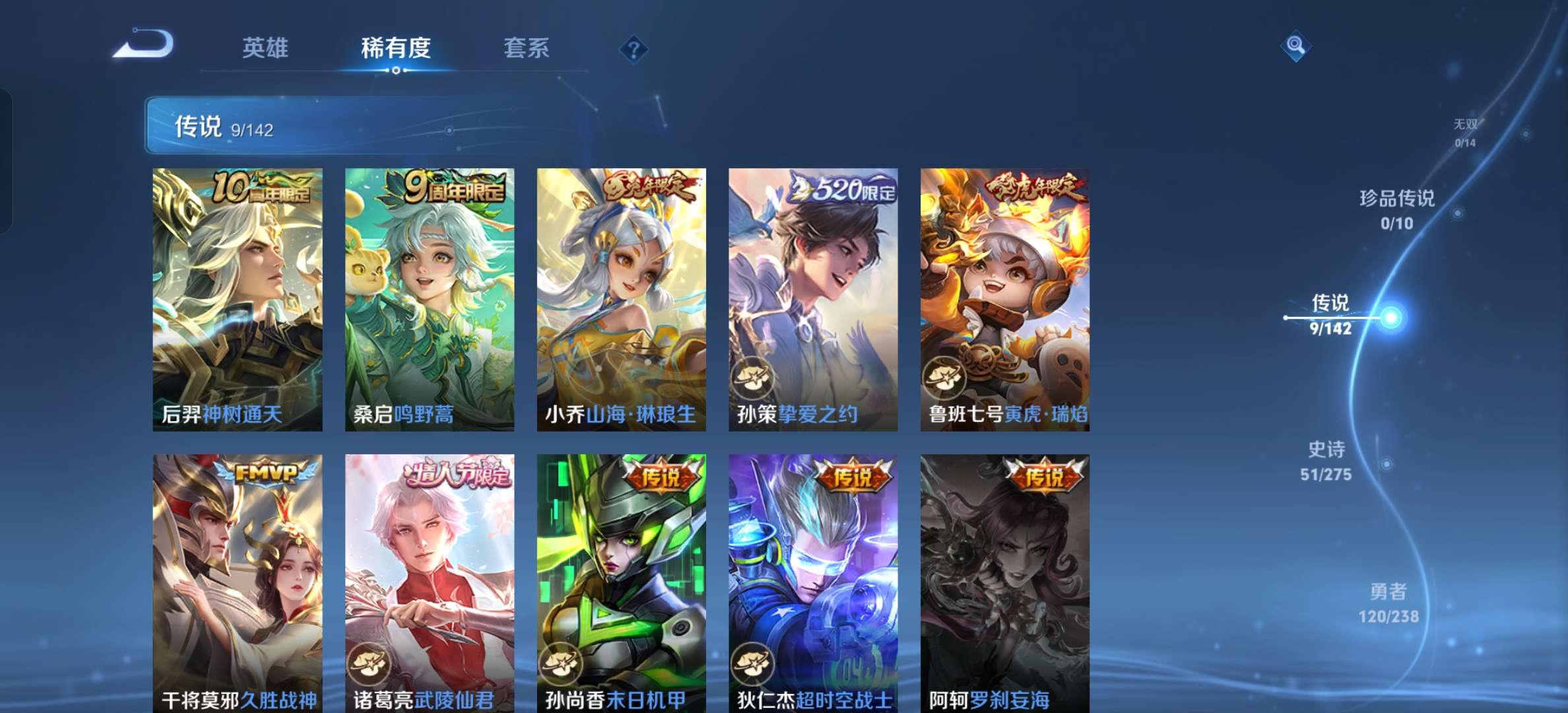 V7 皮肤222 英雄127 至尊星耀 荣耀典藏1 星传说2 传说9
