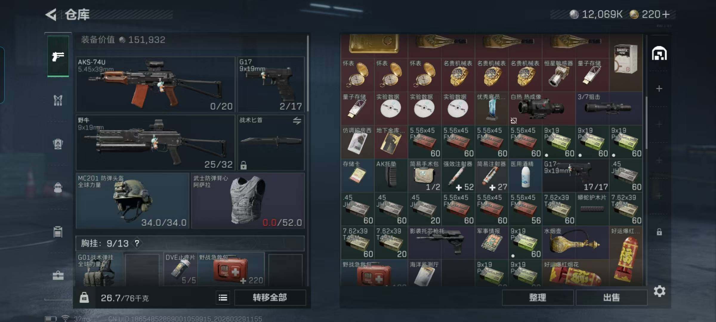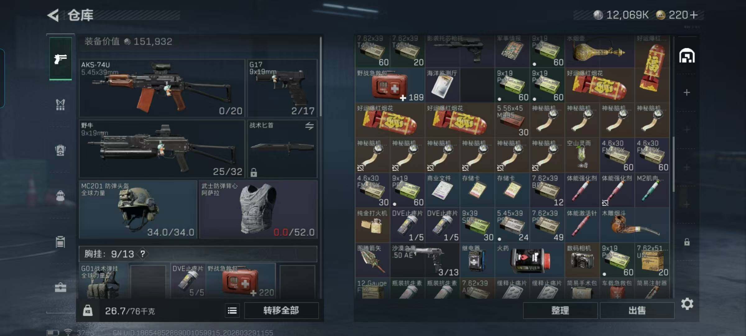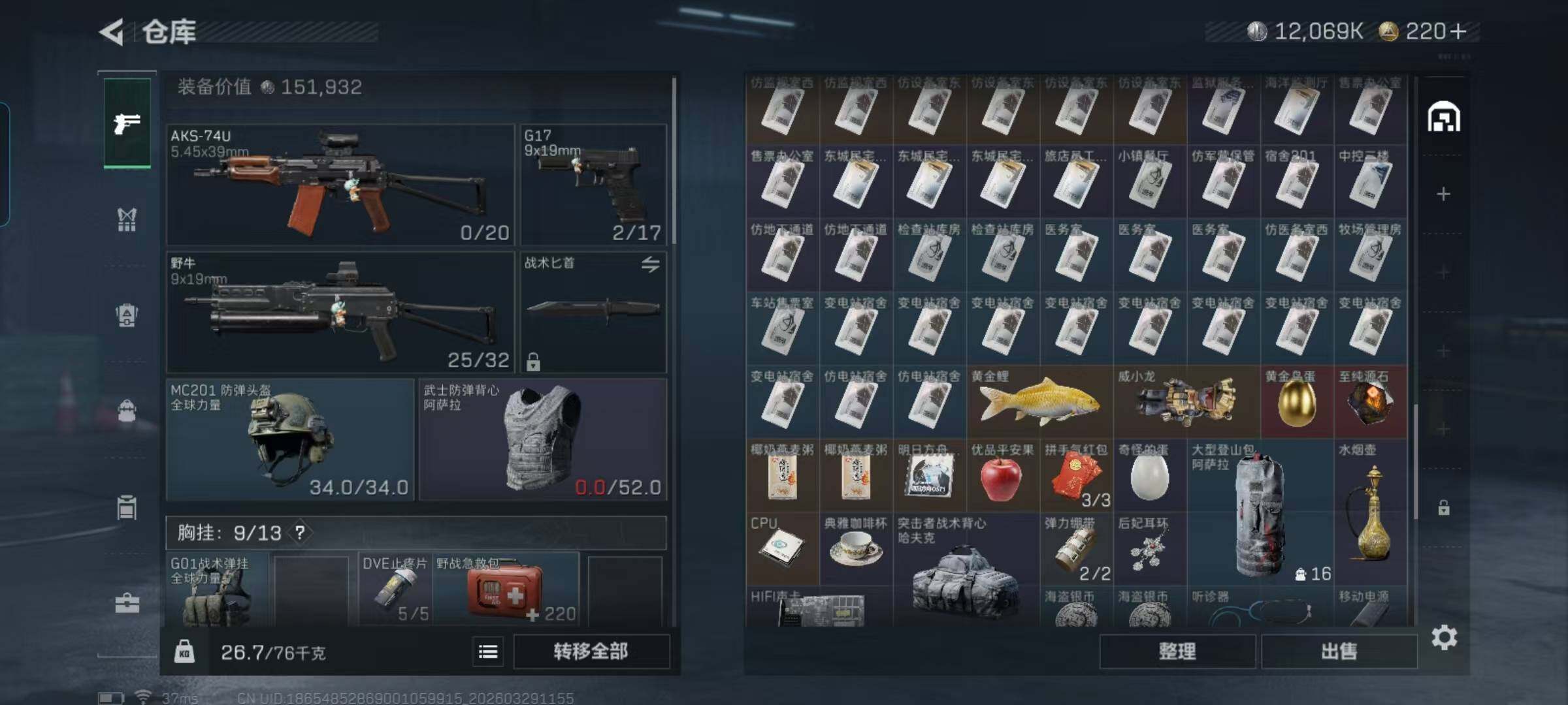 总资产(M):50M/哈夫币(K):12069K/传说枪皮数:8/全面战场等级:7_段位:列兵/烽火地带等级:39_段位:青铜/近战-黑鹰