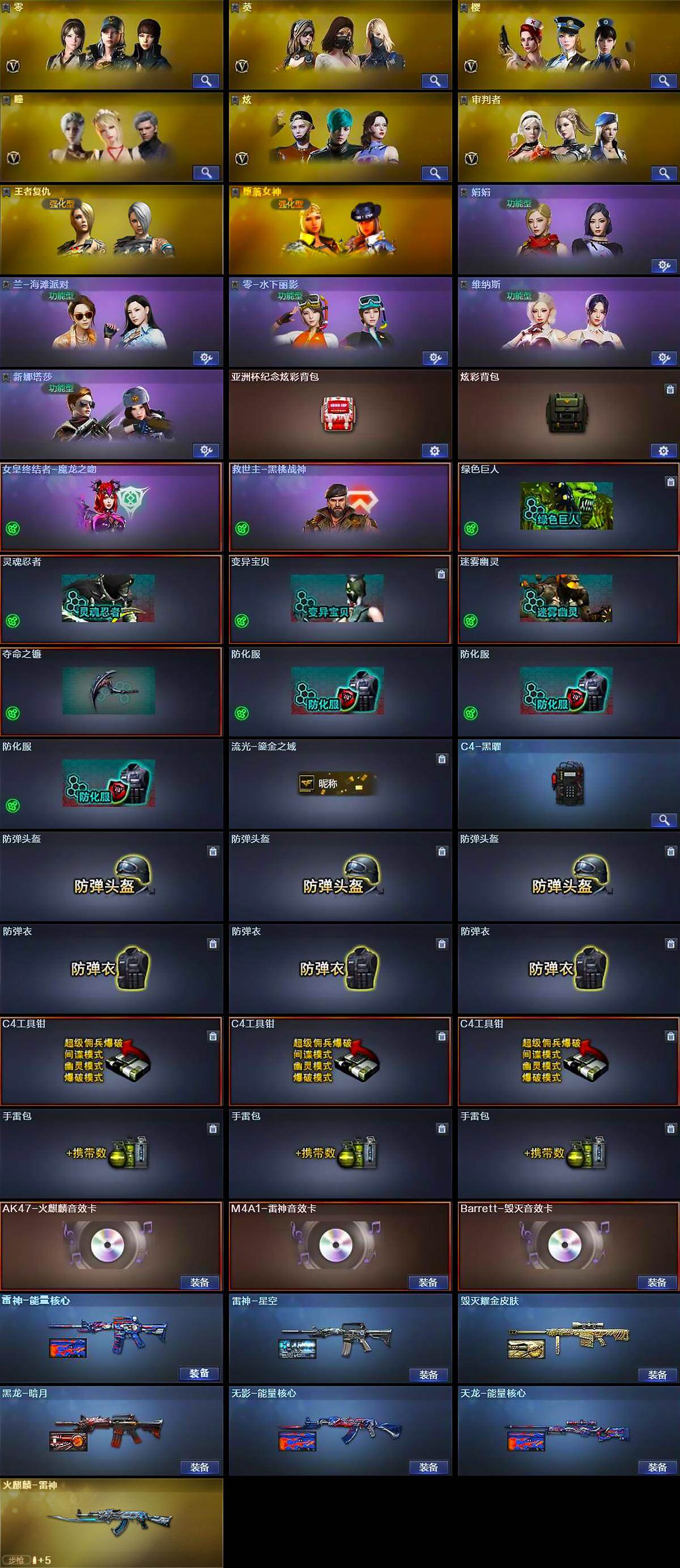 【音效卡】:AK47-火麒麟音效卡,M4A1-雷神音效卡,Barrett-毁灭音效卡