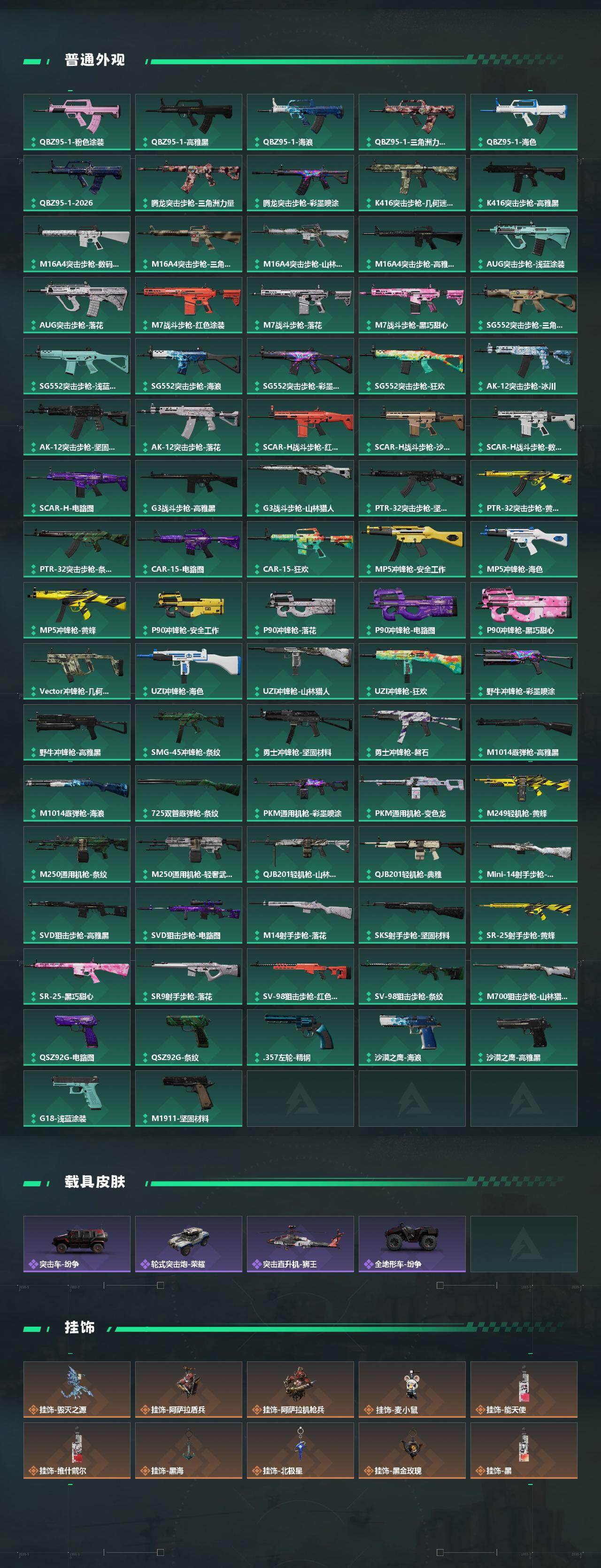 【传说外观】:M4A1突击步枪-蚀金玫瑰,M4A1突击步枪-阿米娅,AKM突击步枪-秘银工艺,ASh-12战斗步枪-鹅鸭杀,SG