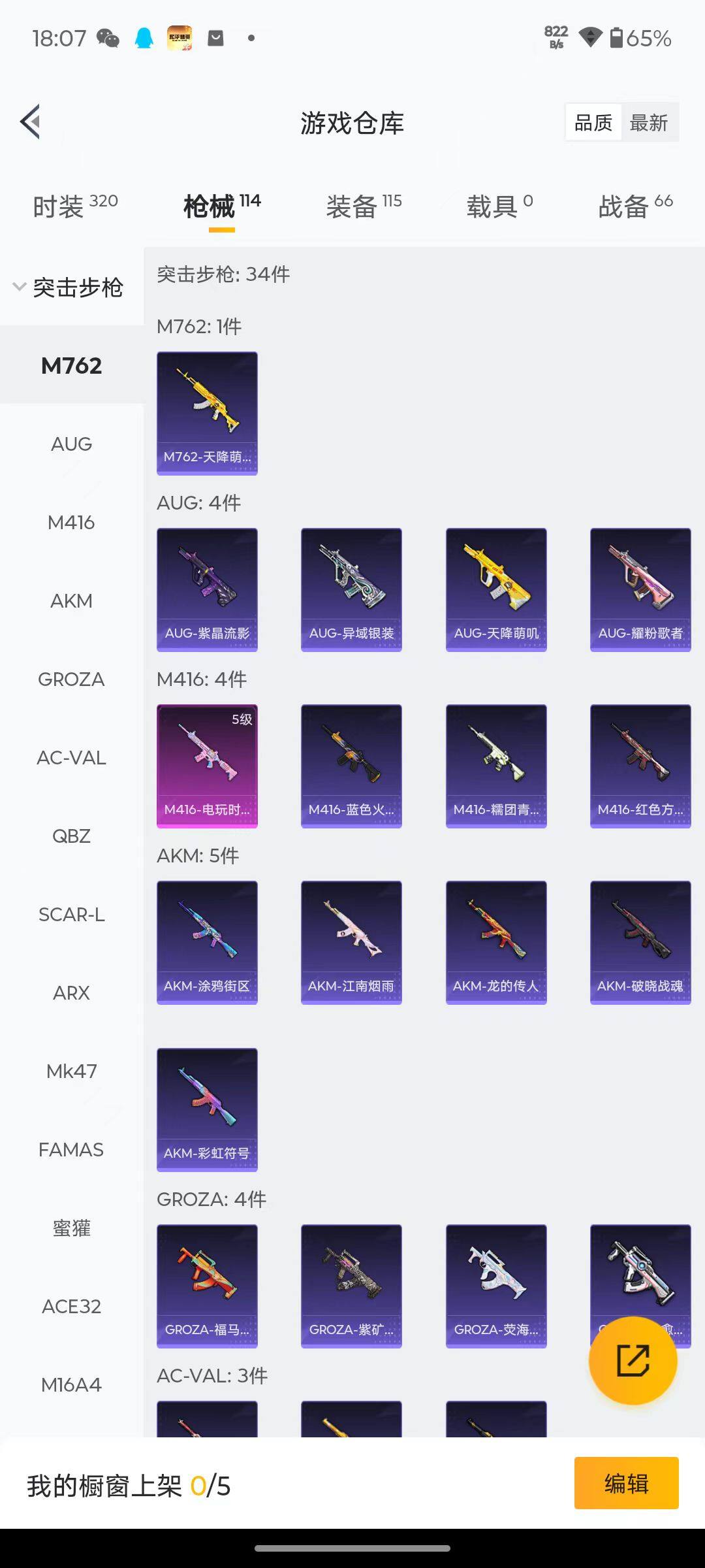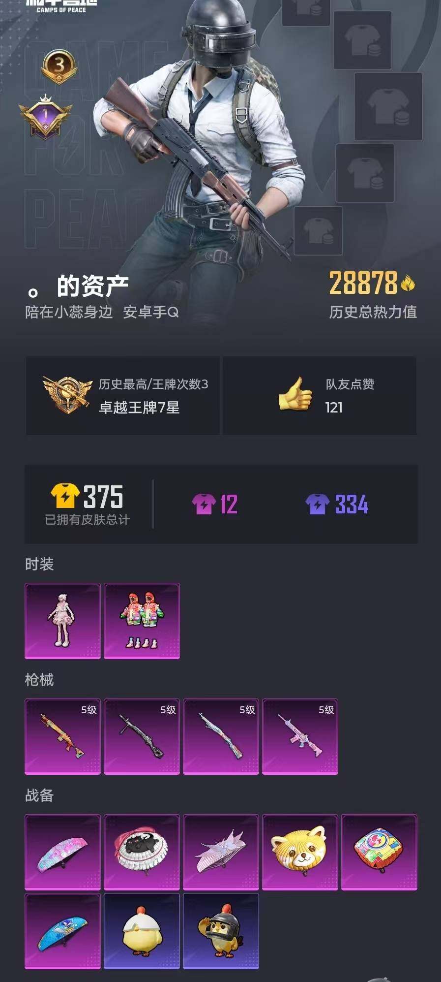 80套装/枪械4/装备115/战备66/王牌印记3/热力值28878/五级M4