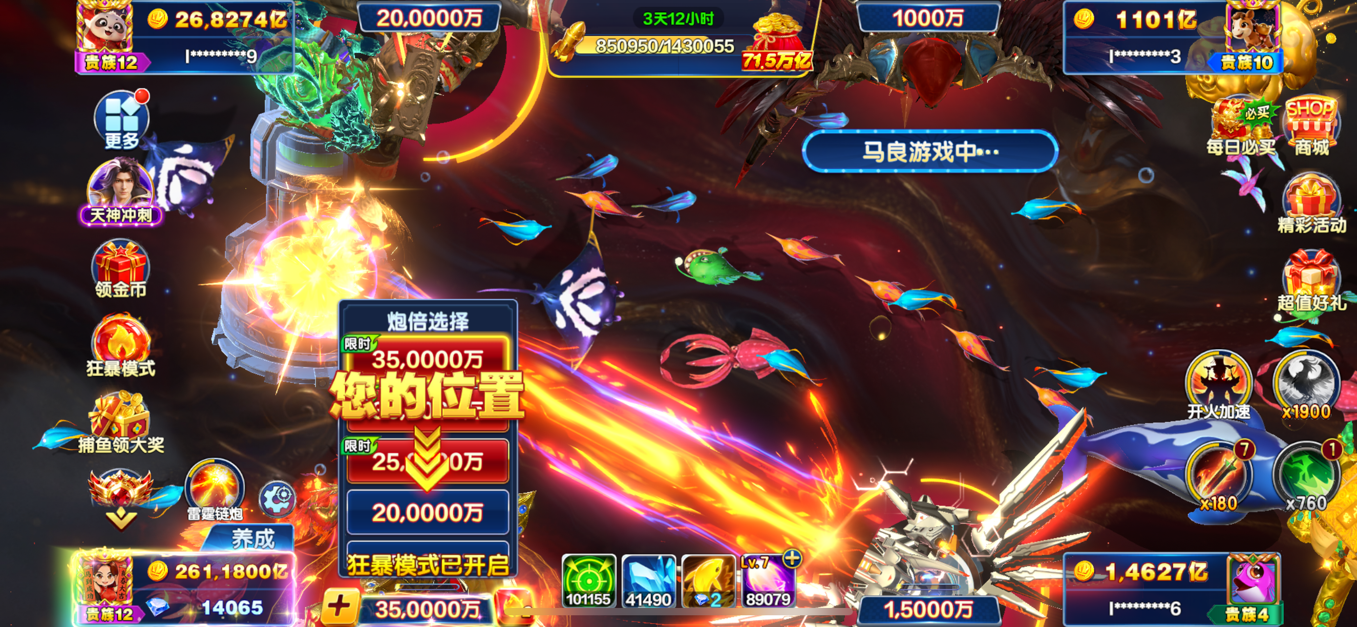100万亿=35 VIP12 天神副炮倍率60%选号勿拍