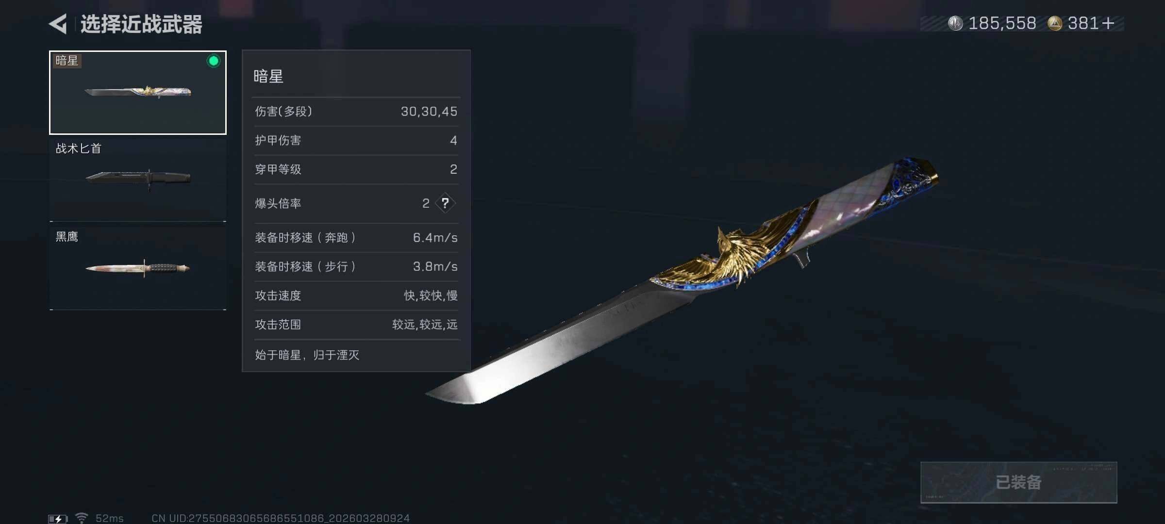 【近战皮肤】:近战-暗星,近战-黑鹰