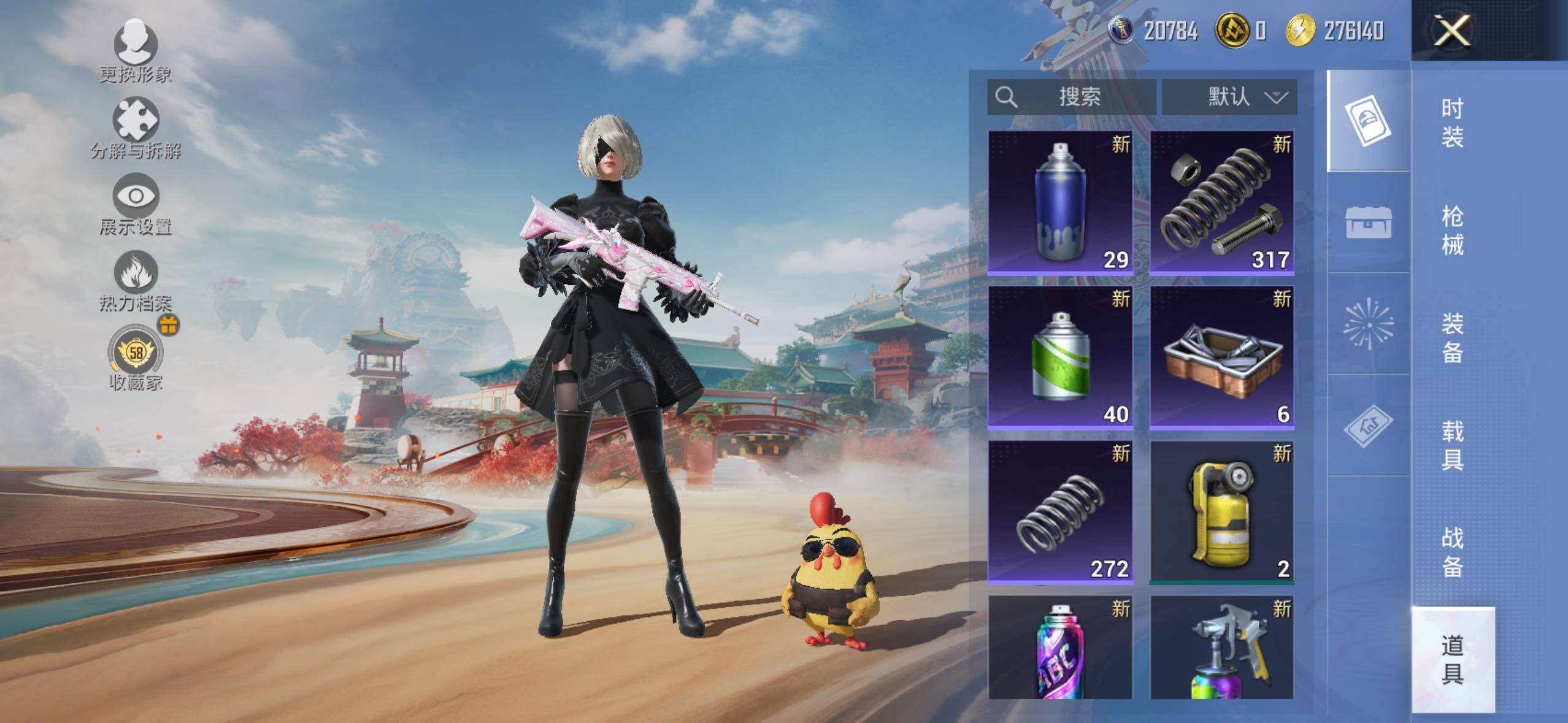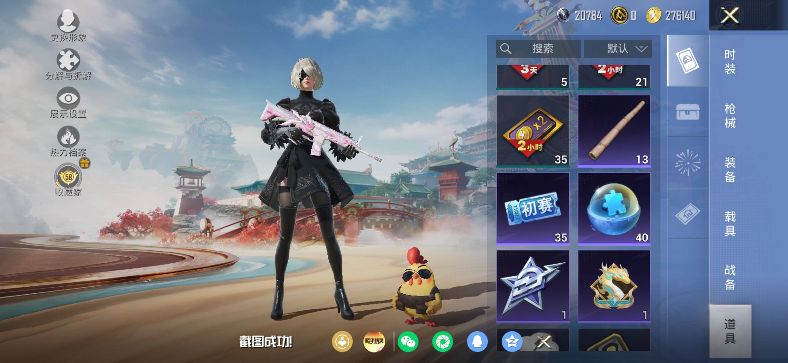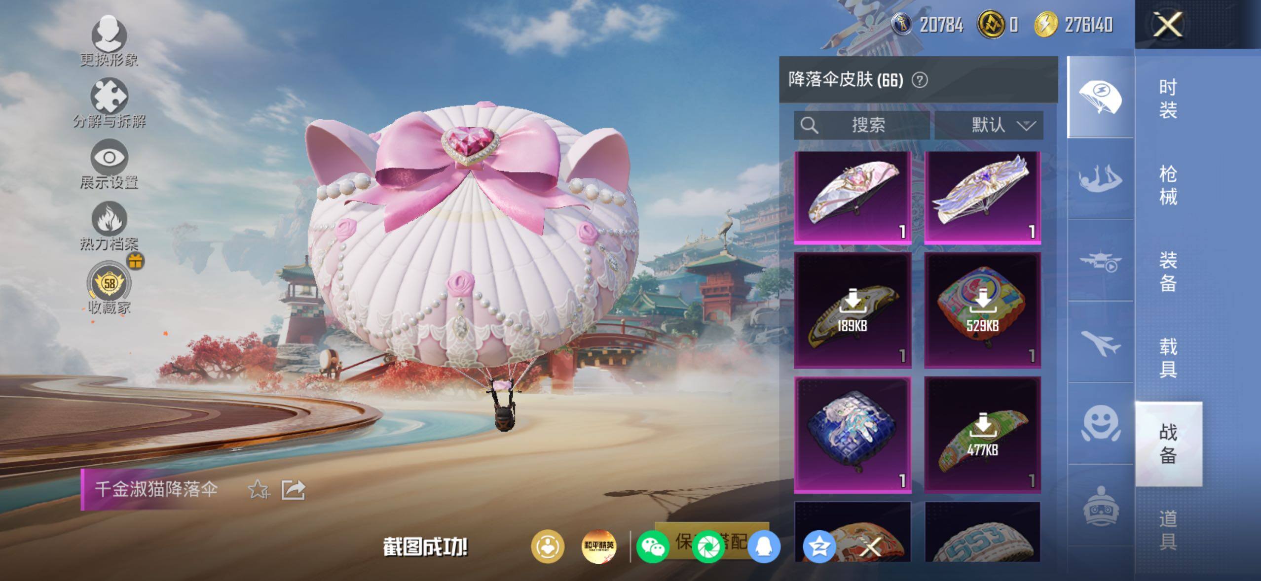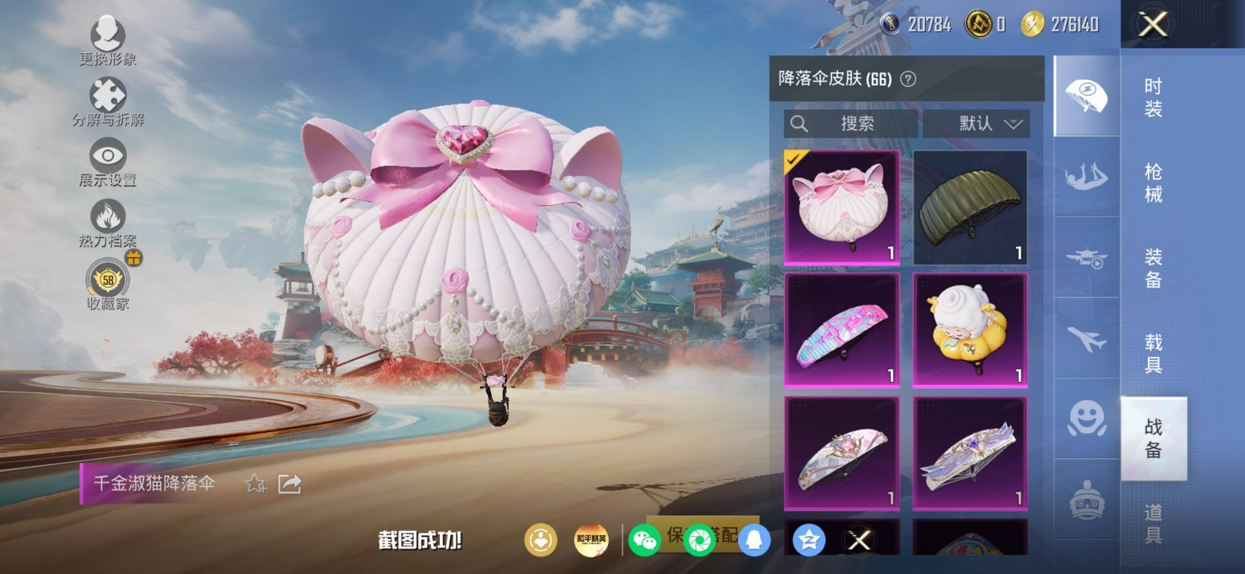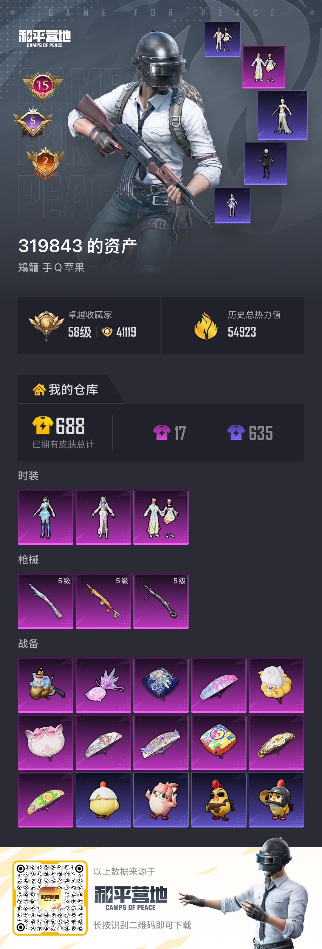 苹果 手Q-3粉装-3特效枪-0载具-2粉色飞行器-54923热力值-15王牌印记-132套装-200枪皮