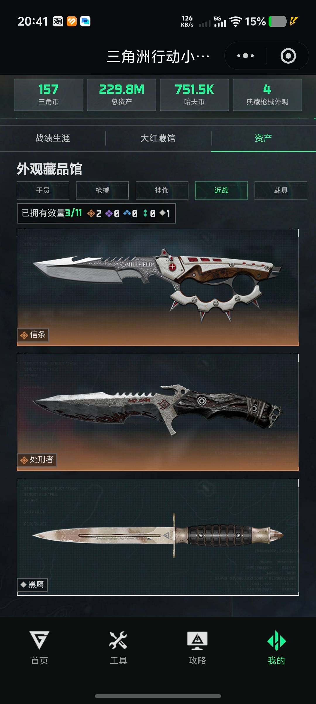 【近战皮肤】:近战-信条,近战-处刑者1级,近战-黑鹰