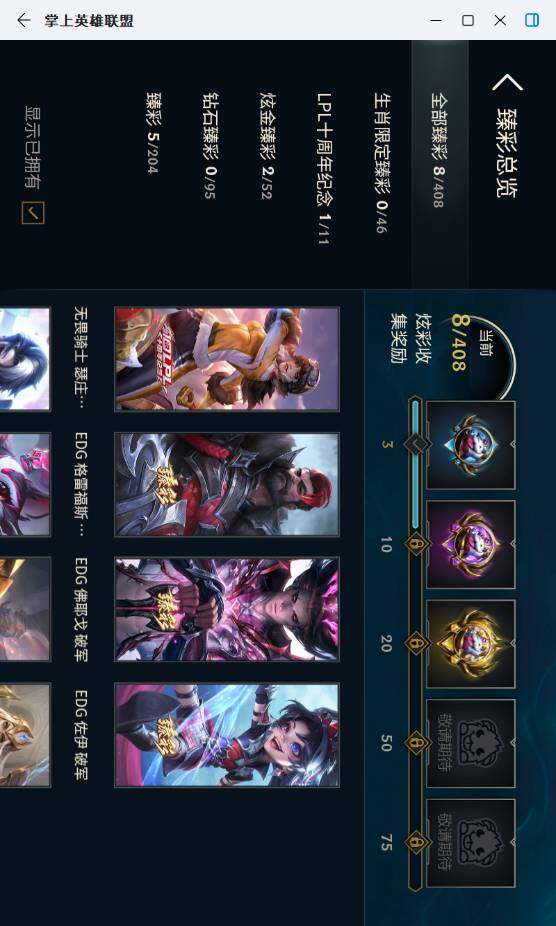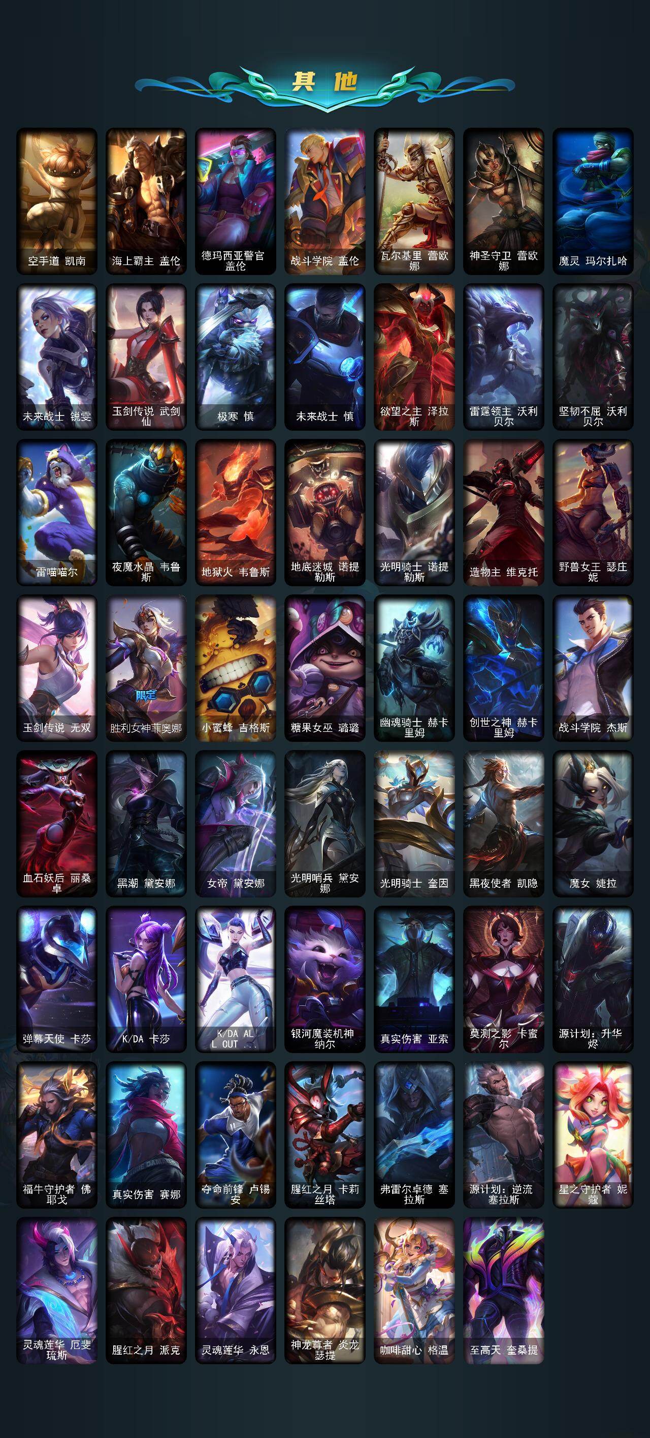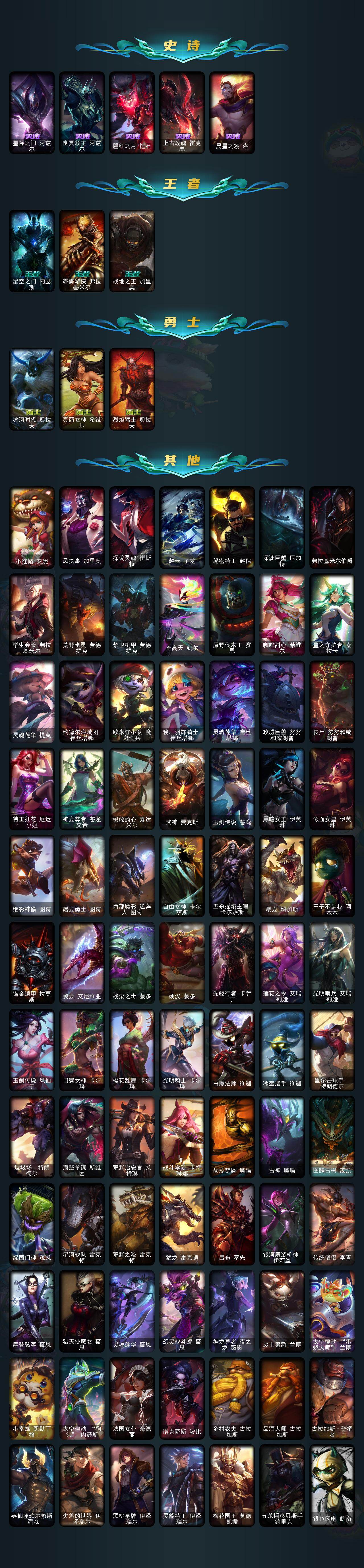青铜段位-172英雄-327皮肤-26炫彩-1终极-6神话-55限定-46传说-75