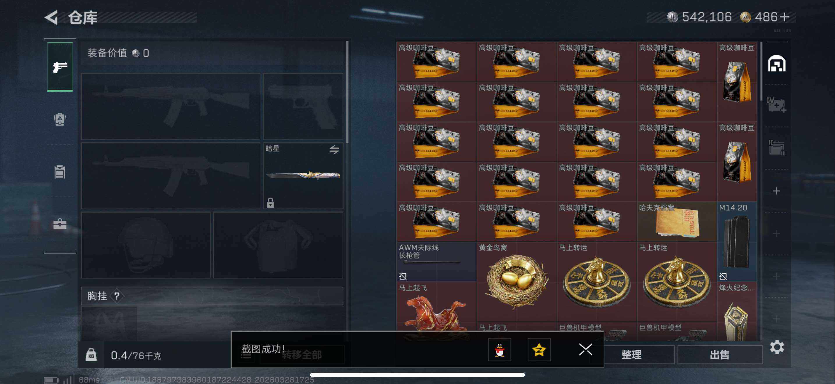 【S1457】【近战-暗星,近战-电锯惊魂】63m总资产-542k哈夫币-60烽火等级-钻石-50战场等级-尉官