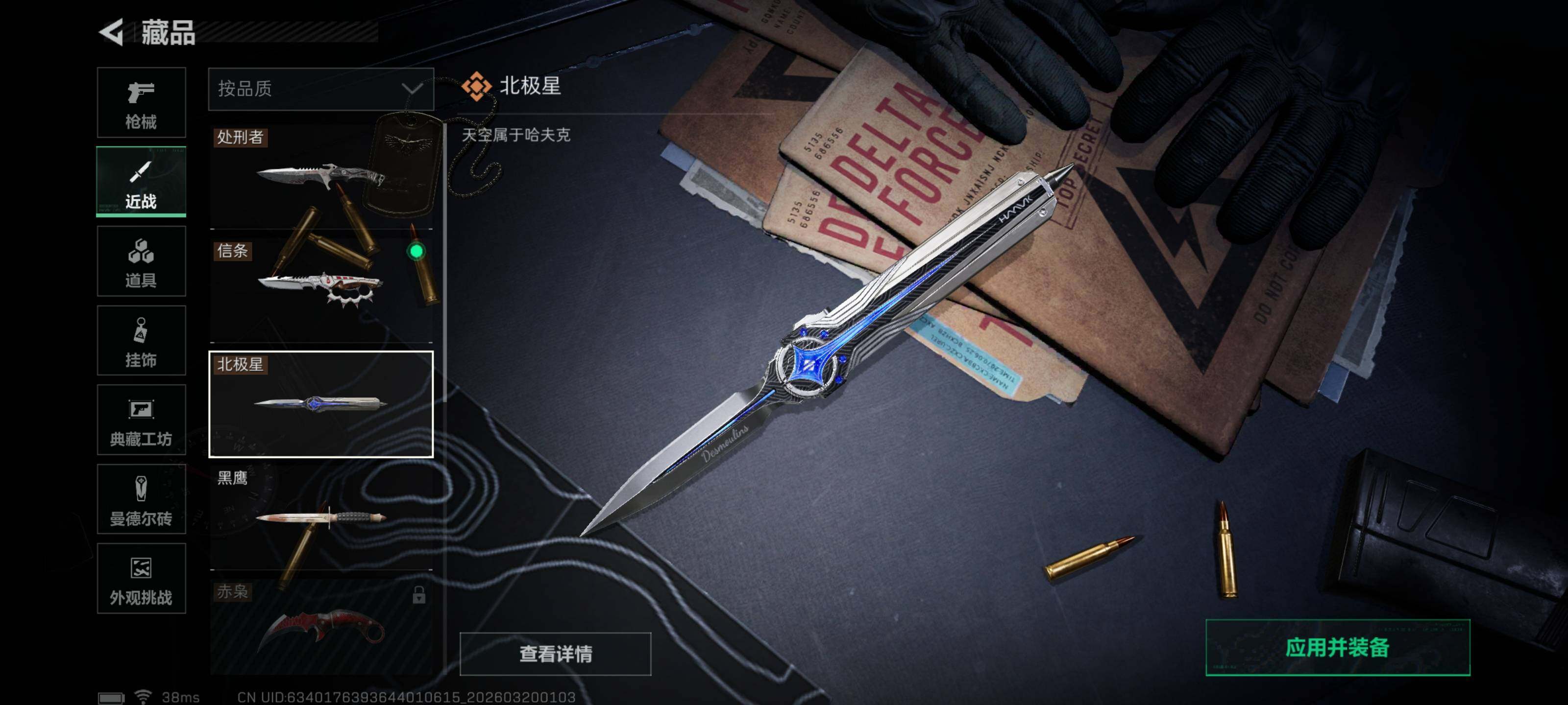 【近战皮肤】:近战-北极星,近战-信条,近战-处刑者1级,近战-黑鹰