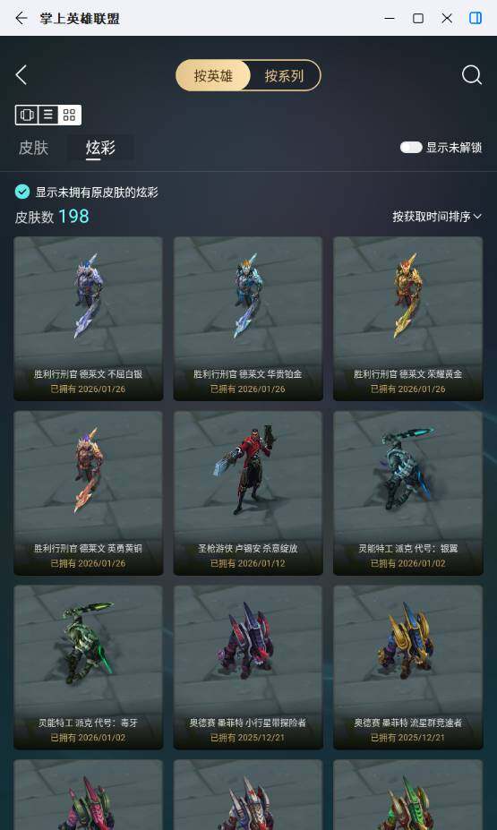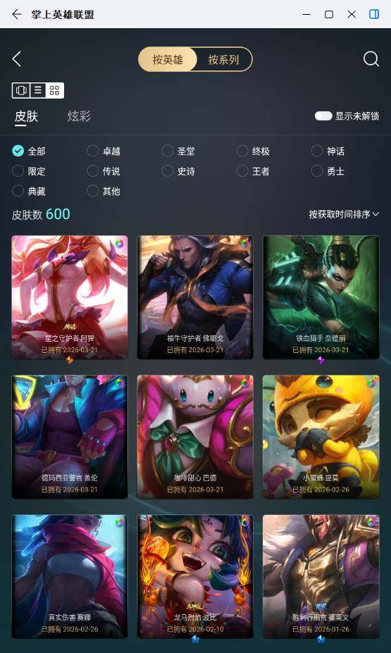 黄金段位-172英雄-600皮肤-198炫彩-2终极-22神话-98限定-56传说-153史诗