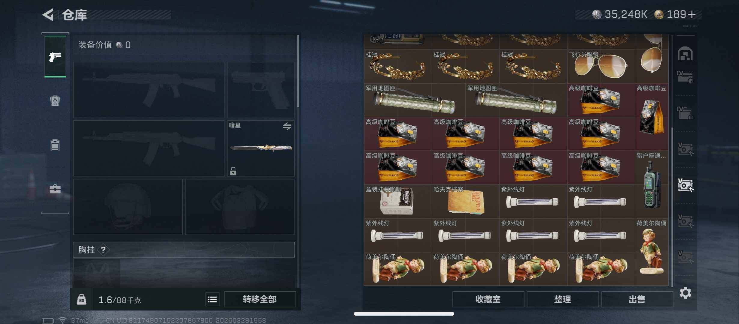 【S1454】【红狼-蚀金玫瑰/近战-暗星/高资产/高红弹】333m总资产-35248k哈夫币-60烽火等级-钻石-50战场等级-尉官