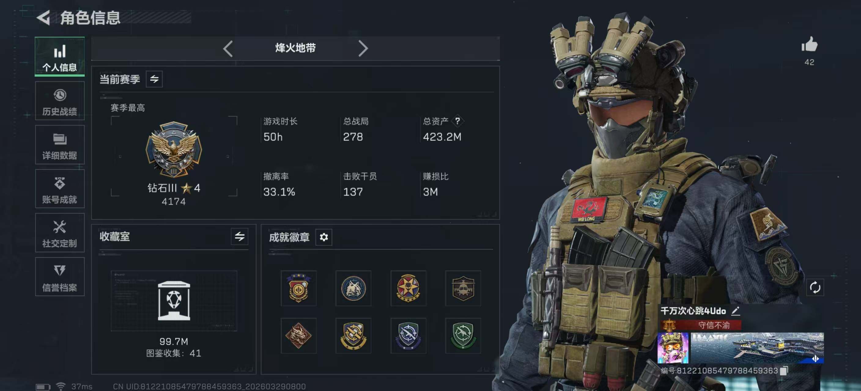 423m总资产-203038k哈夫币-60烽火等级-钻石-9战场等级-列兵