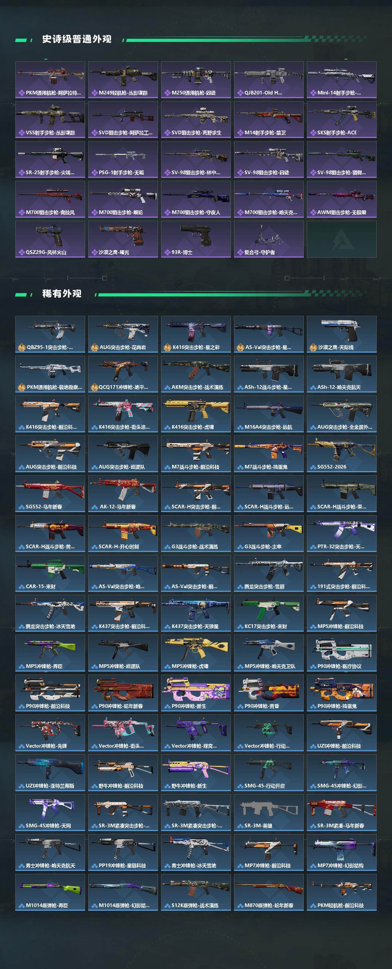 【传说外观】:M4A1突击步枪-蚀金玫瑰,M4A1突击步枪-阿米娅,ASh-12战斗步枪-鹅鸭杀