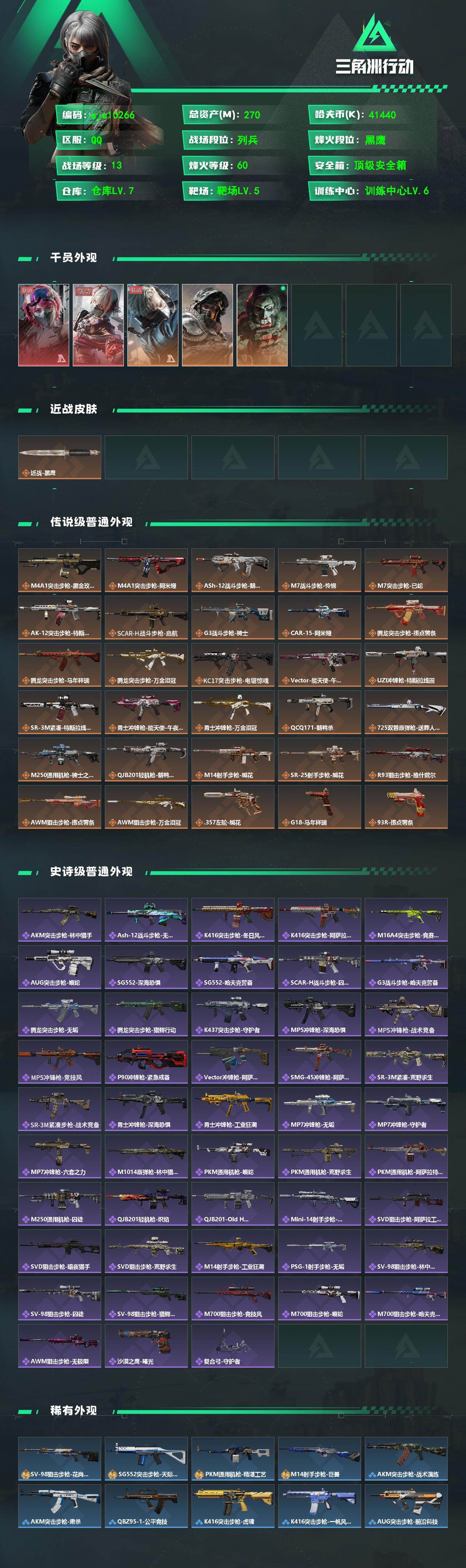 270m总资产-41440k哈夫币-60烽火等级-黑鹰-13战场等级-列兵