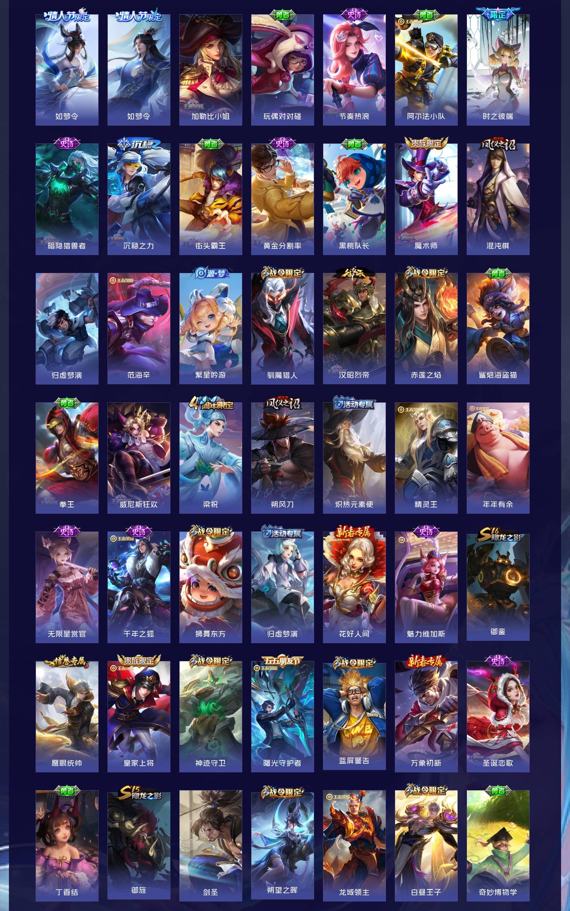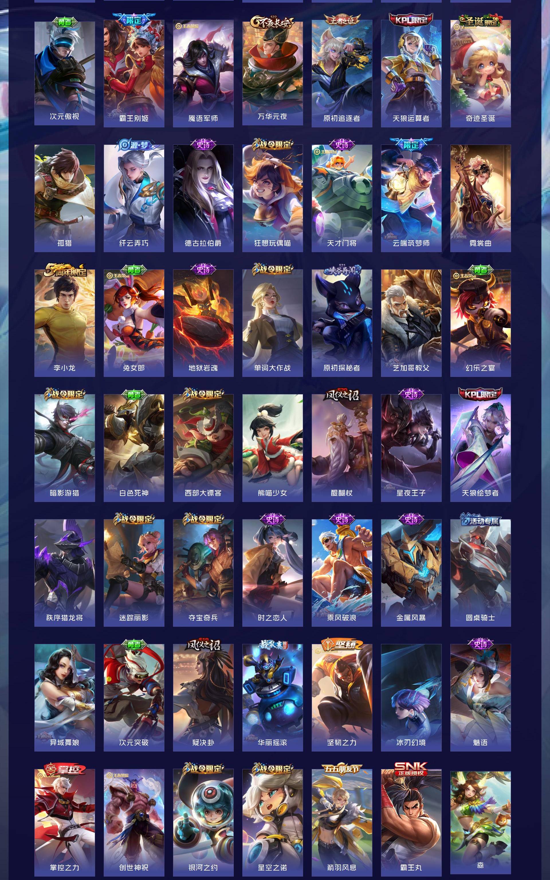 V10 皮肤541 英雄129 荣耀王者 荣耀典藏4 无双皮肤1 珍品传说6 传说61