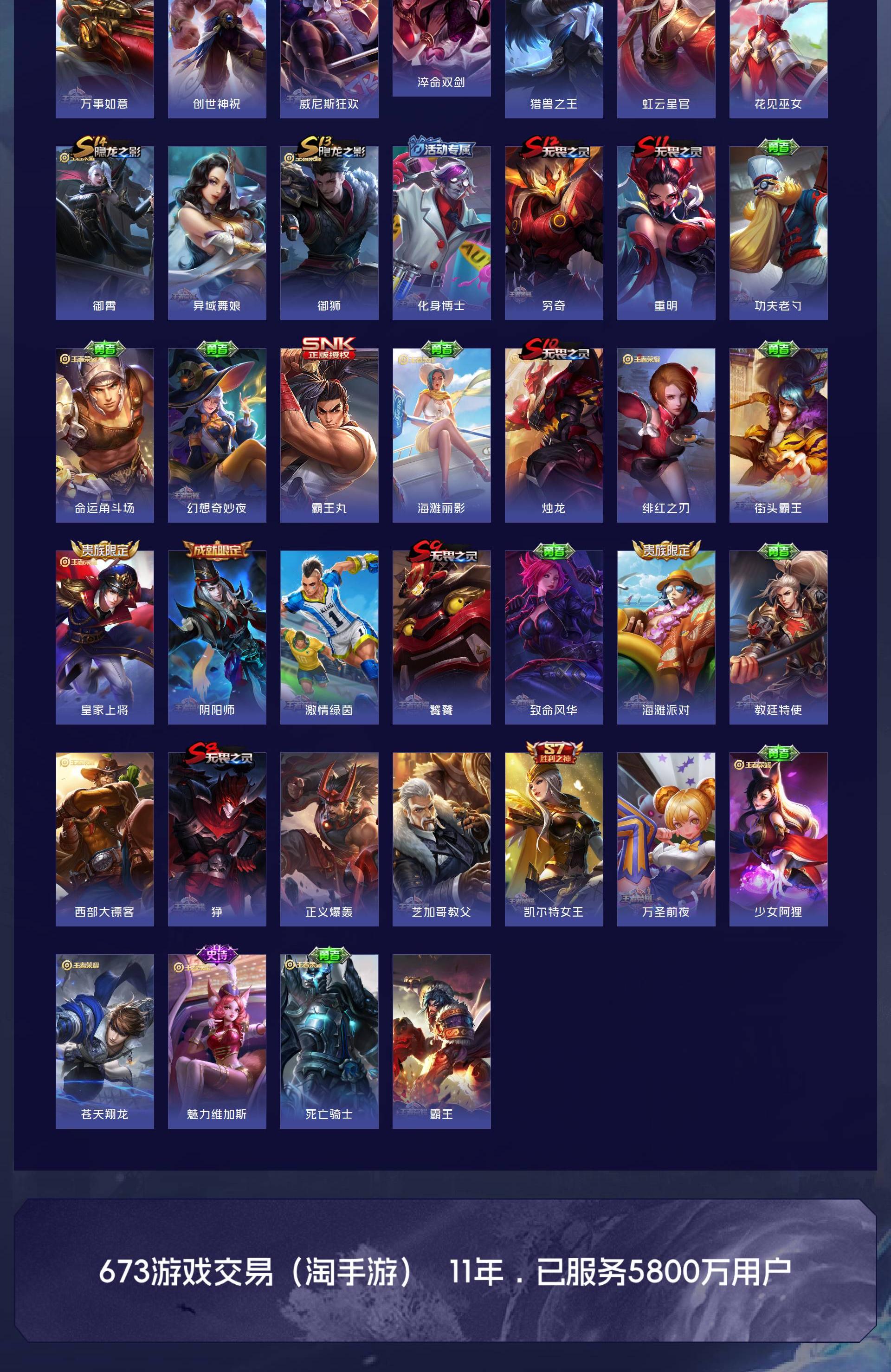 V8 皮肤273 英雄128 无双王者 荣耀典藏1 无双皮肤2 珍品传说1 传说18