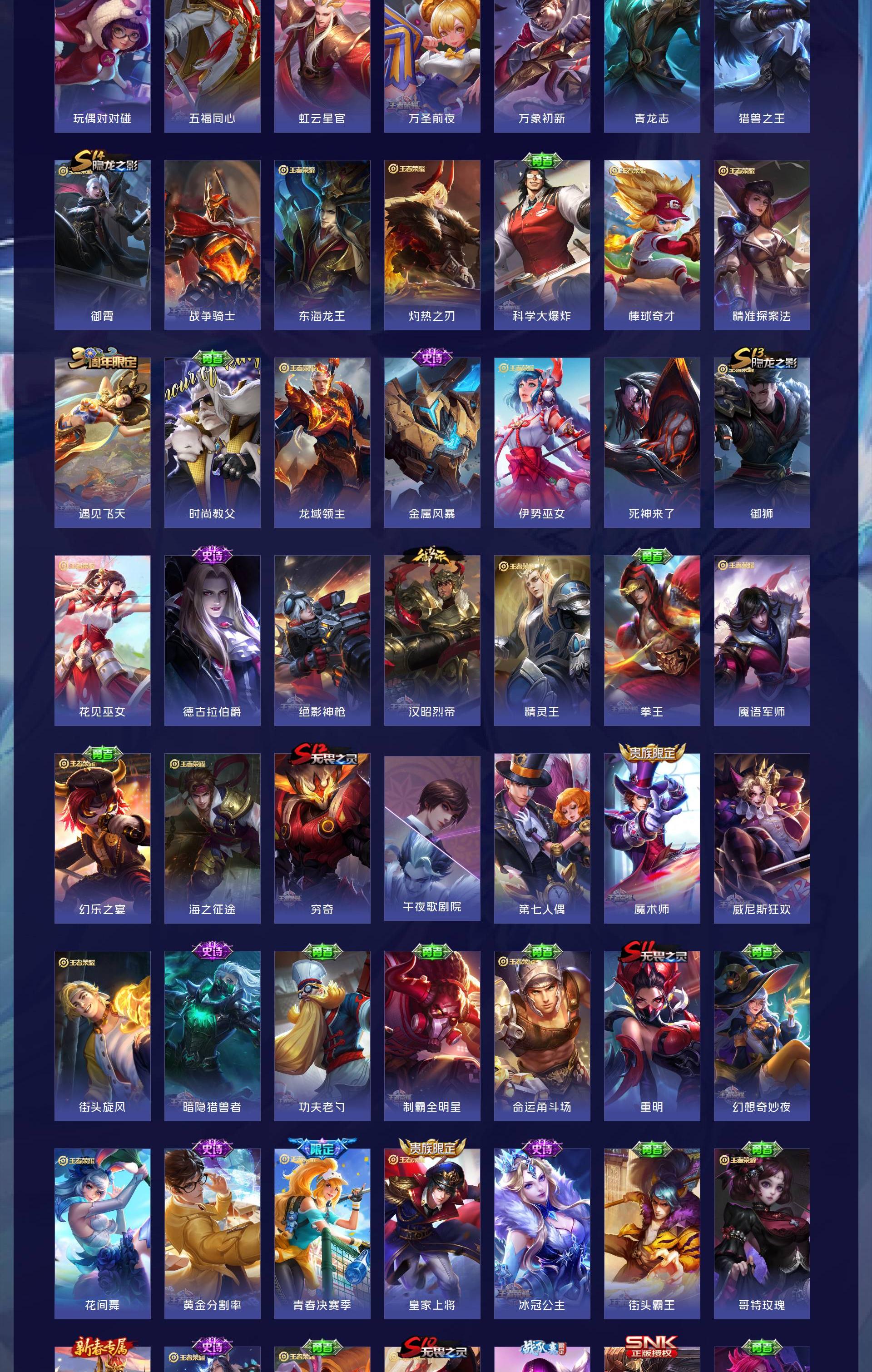 V8 皮肤280 英雄127 至尊星耀 荣耀典藏1 无双皮肤3 珍品传说1 传说11