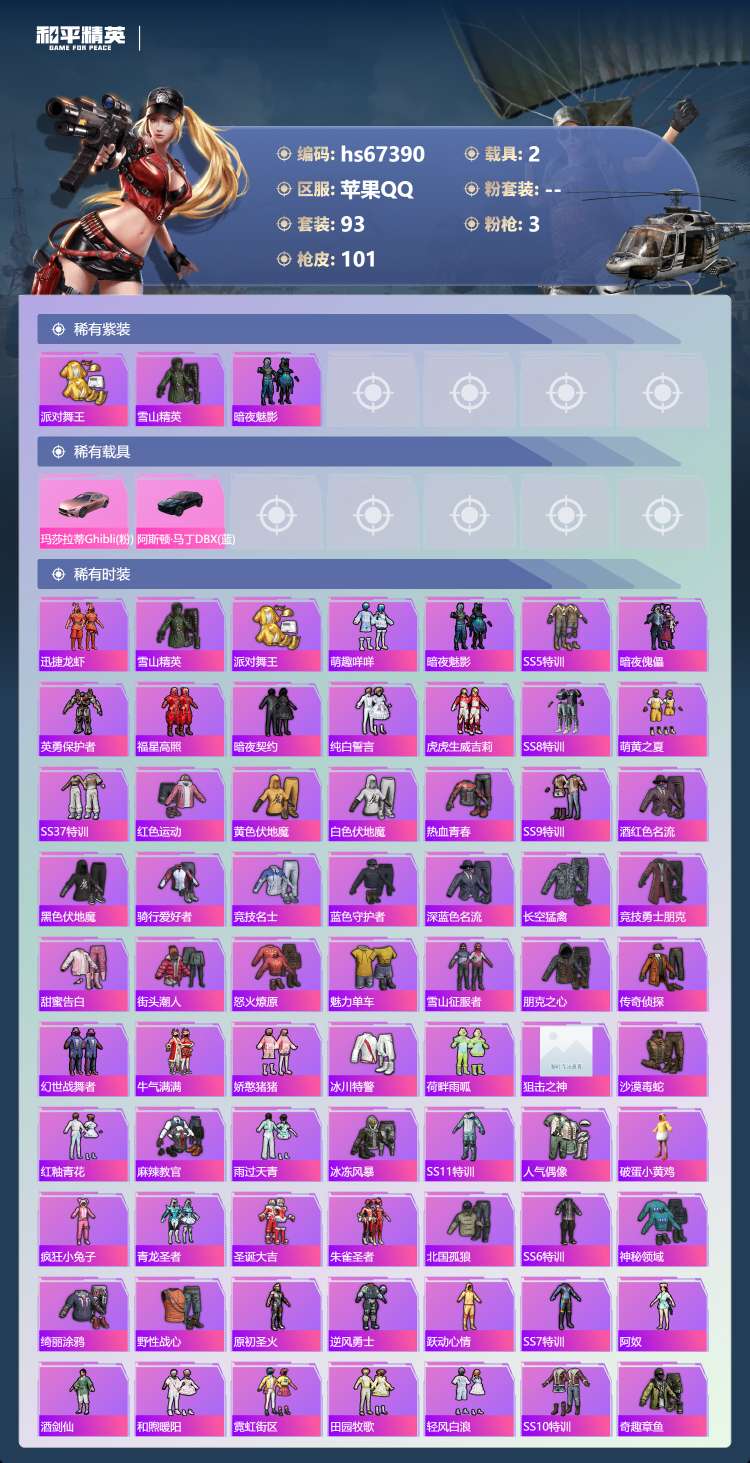 hs67390 苹果手Q-11王牌印记-有战神框-3特效枪-2载具-36212热力值-93套装-10