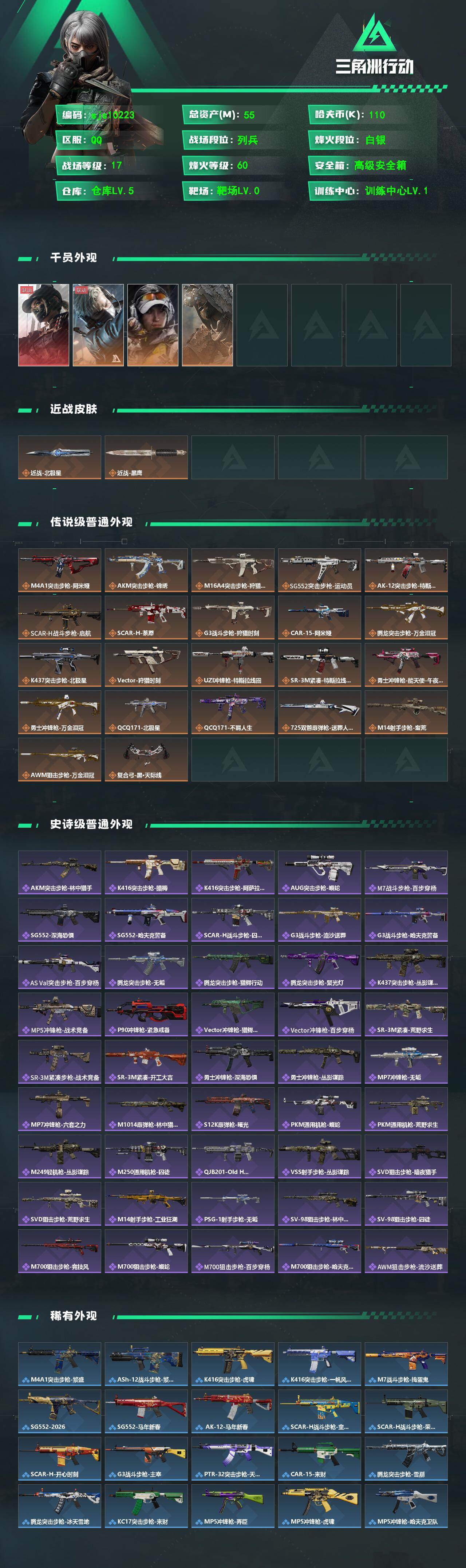 55m总资产-110k哈夫币-60烽火等级-白银-17战场等级-列兵