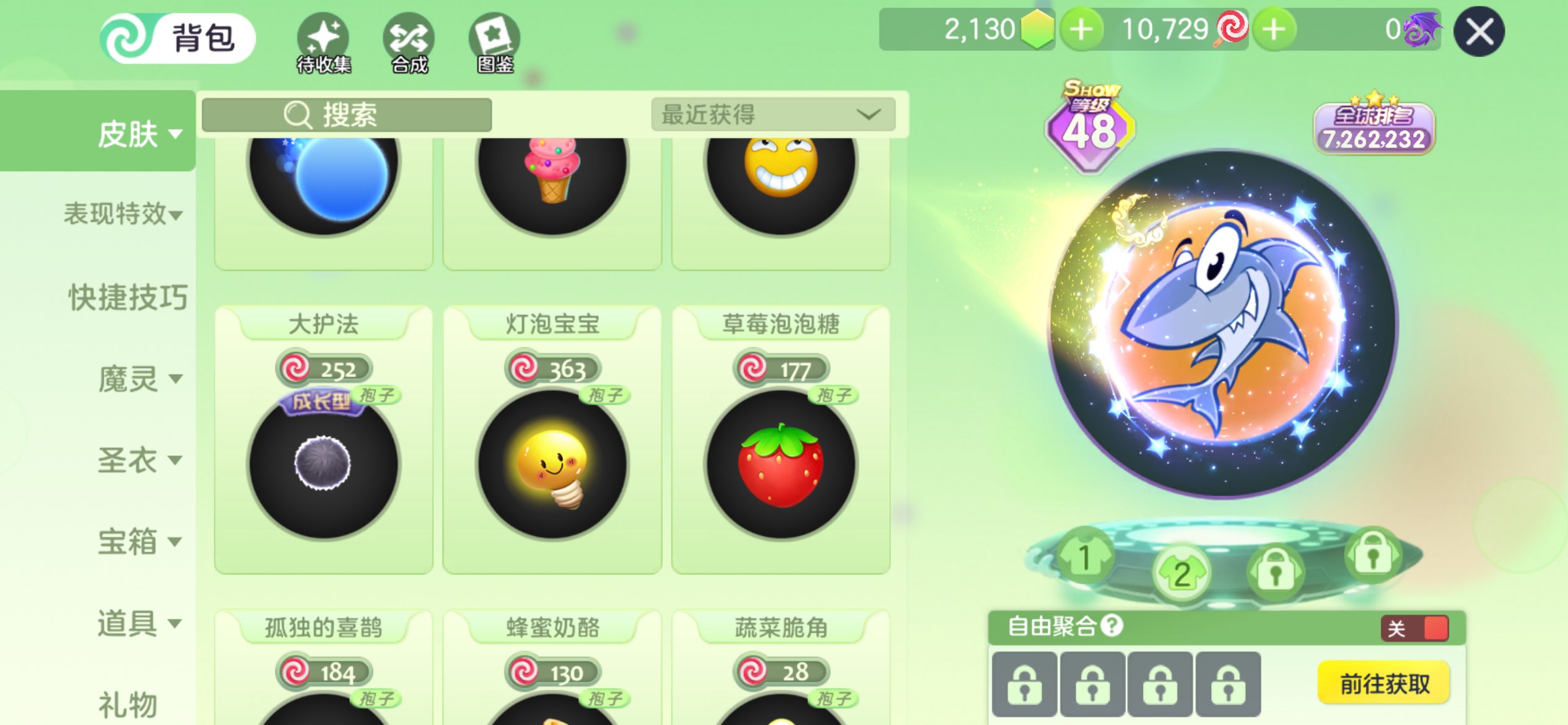 球球大作战账号,资源很丰富,皮肤、圣衣、魔灵、光环啥的都有,