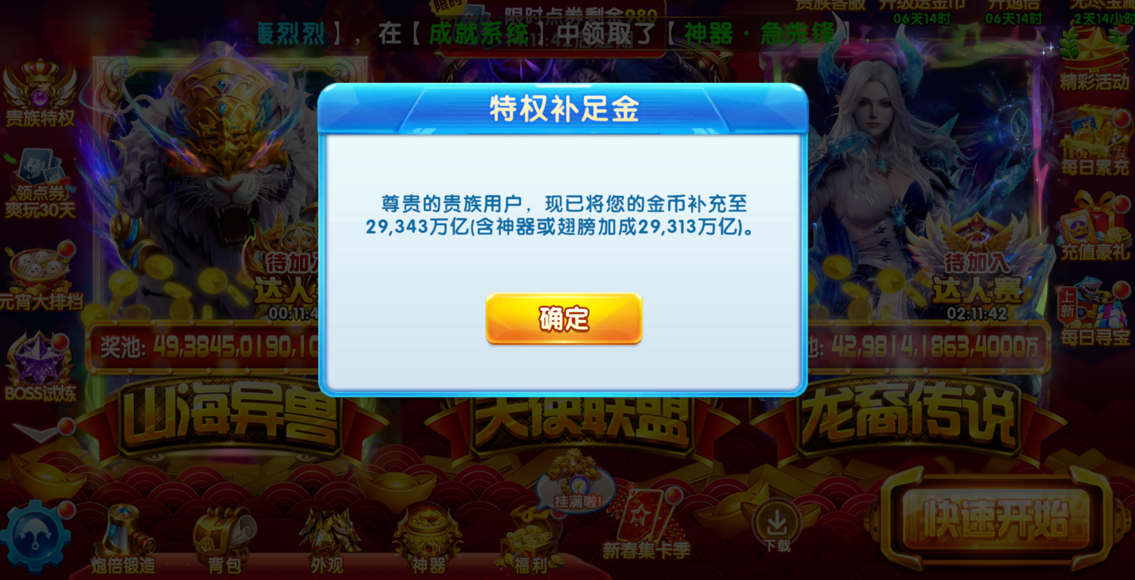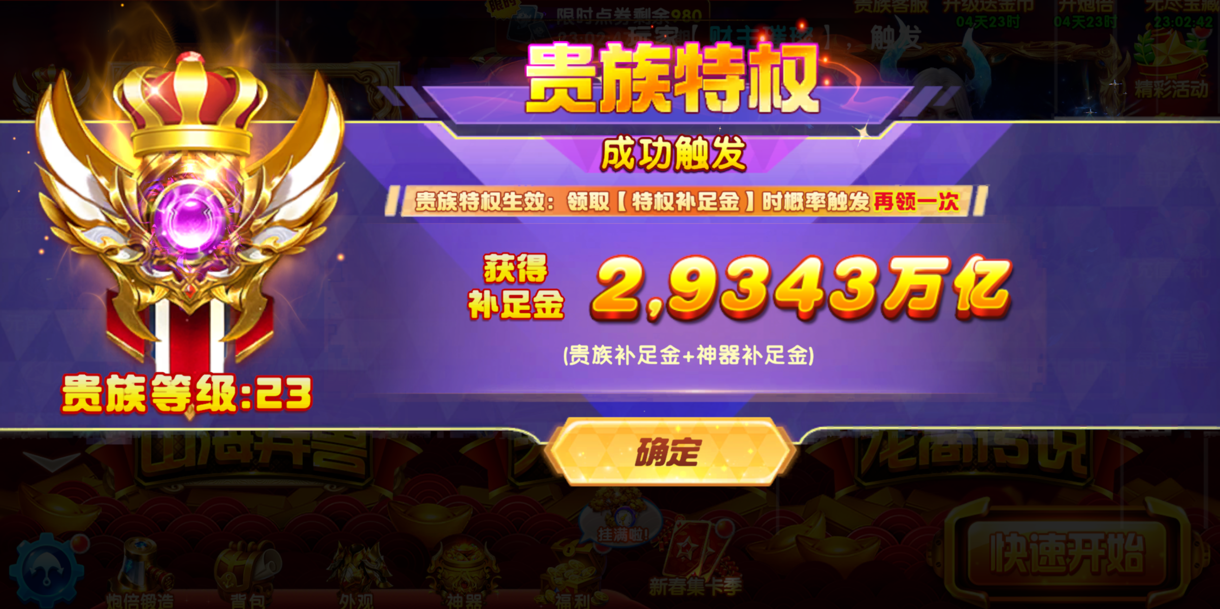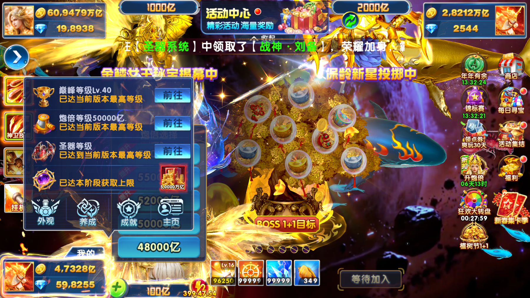 极品号官方 捕鱼大作战贵族23 机甲十五套 巅峰(满级) 炮位60000(满级)圣器(满级)位60000(满级)圣器(满级)不过户送终生包赔