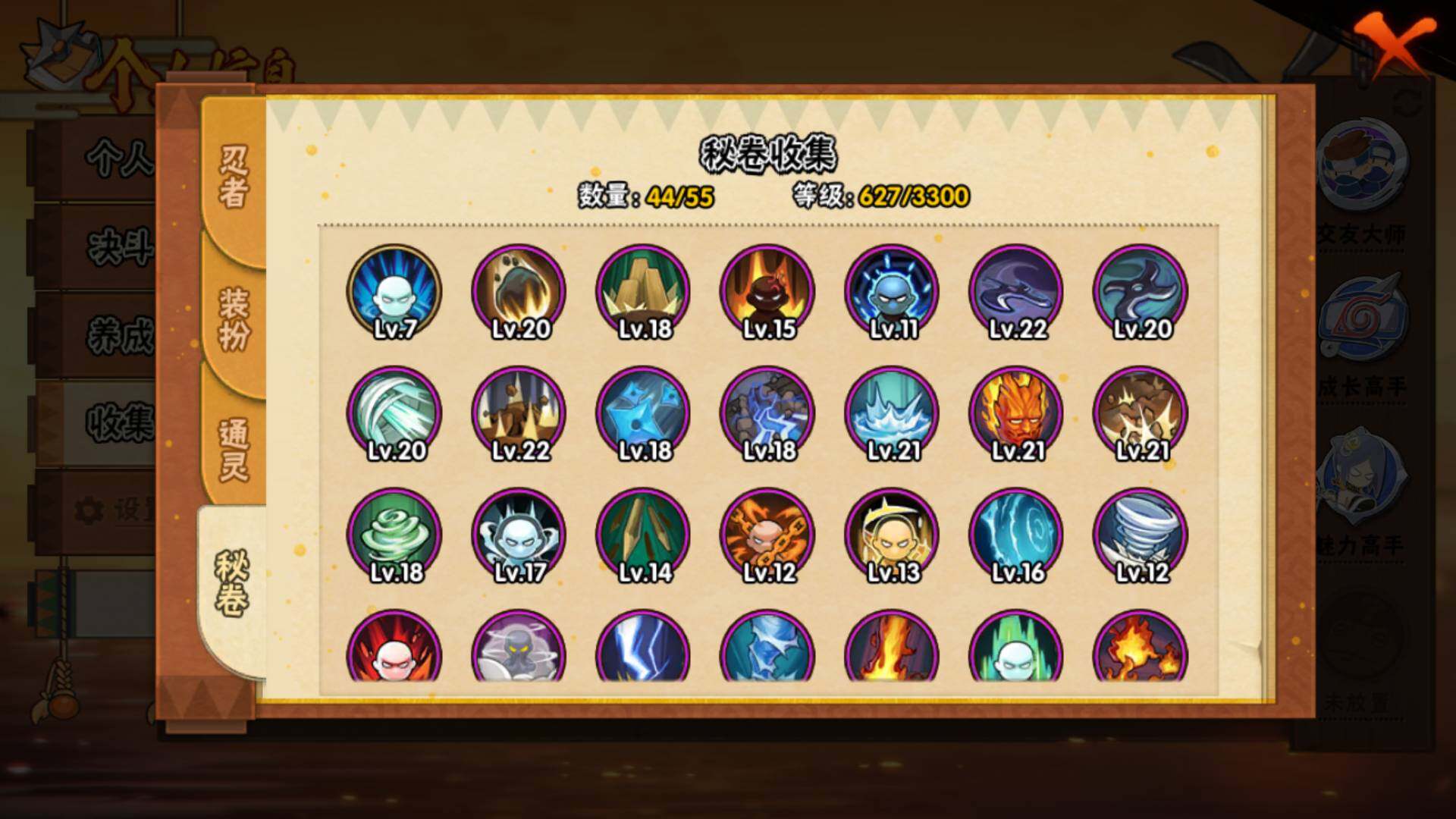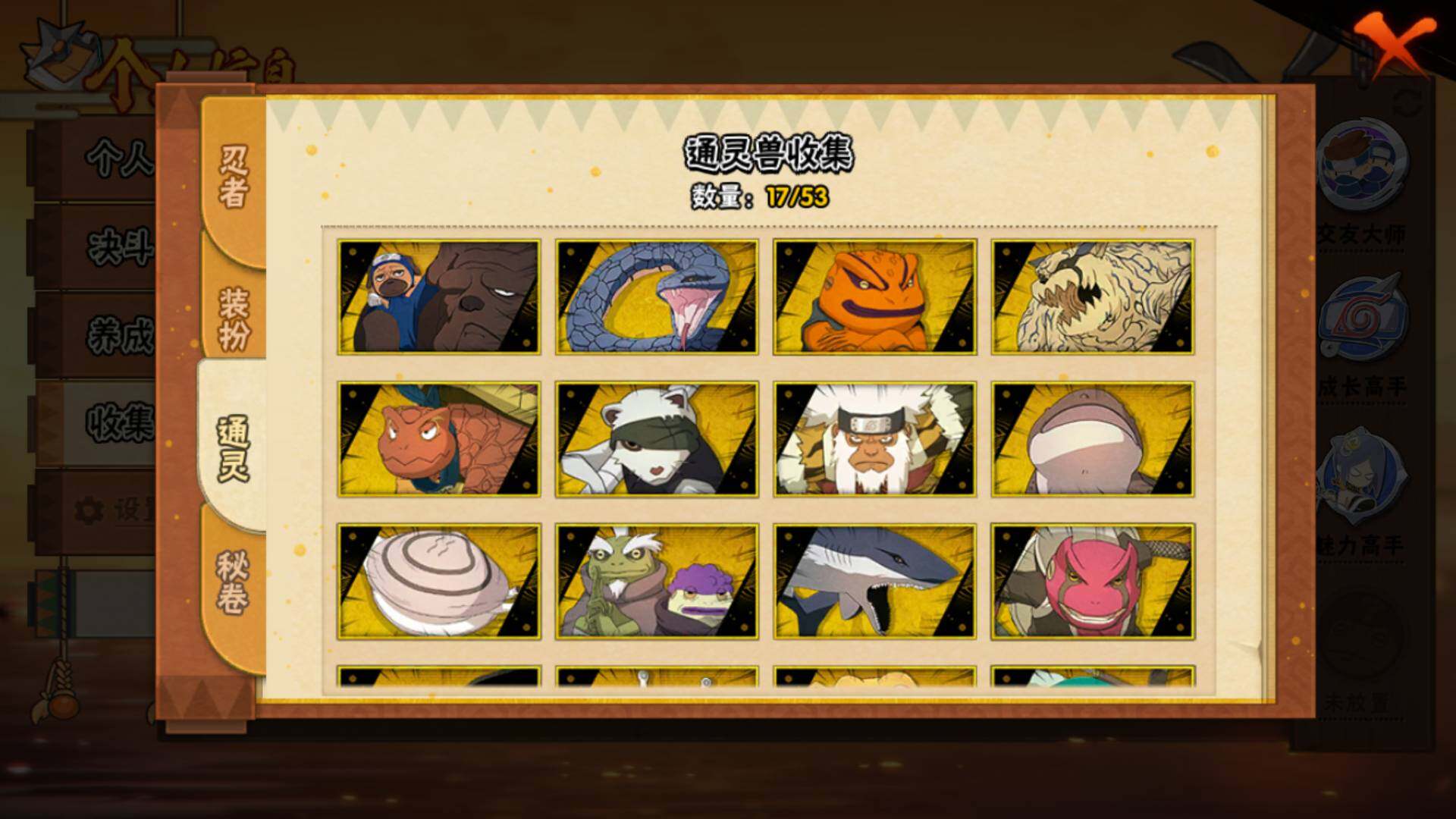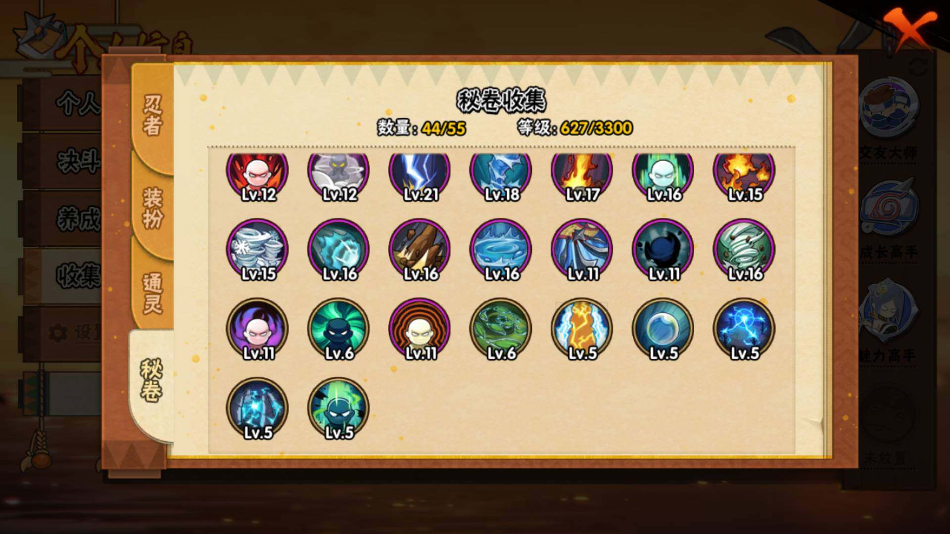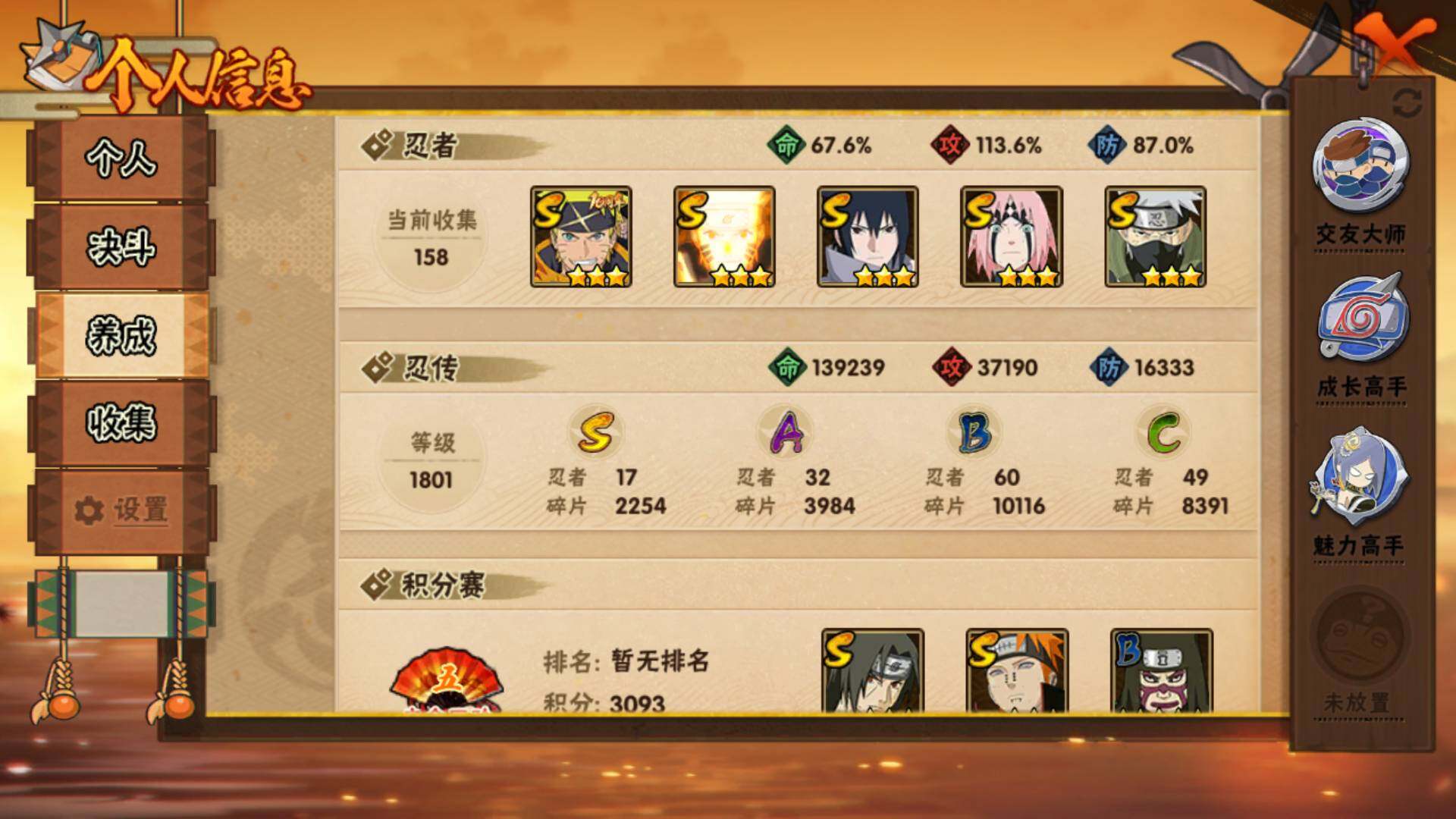 【S级忍者】:猿飞日斩「秽土转生」(3星),宇智波斑「秽土转生·解」(3星),春野樱「忍界大战」(3星),艾「忍界大战」(3星),宇智波鼬「须佐能乎」(3星),旗木卡卡西「须佐能乎」(3星),自来也「舞之豪杰」(3星),自来也「传说中的三忍