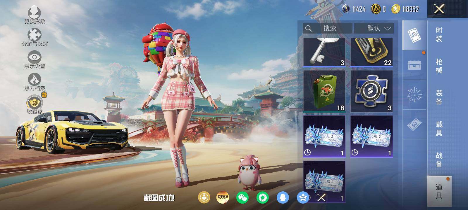安卓 手Q-11粉装-4特效枪-1载具-1粉色飞行器-62270热力值-4王牌