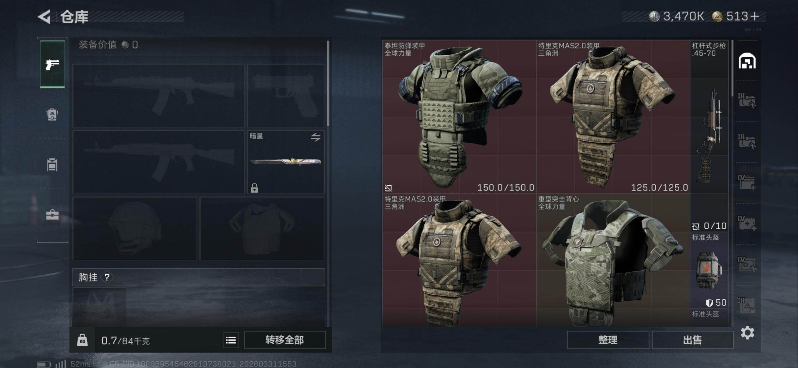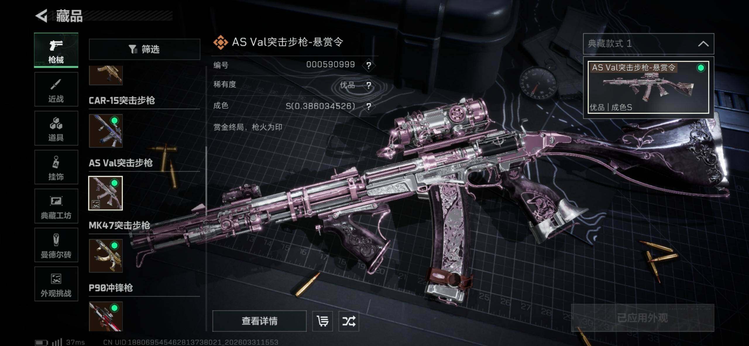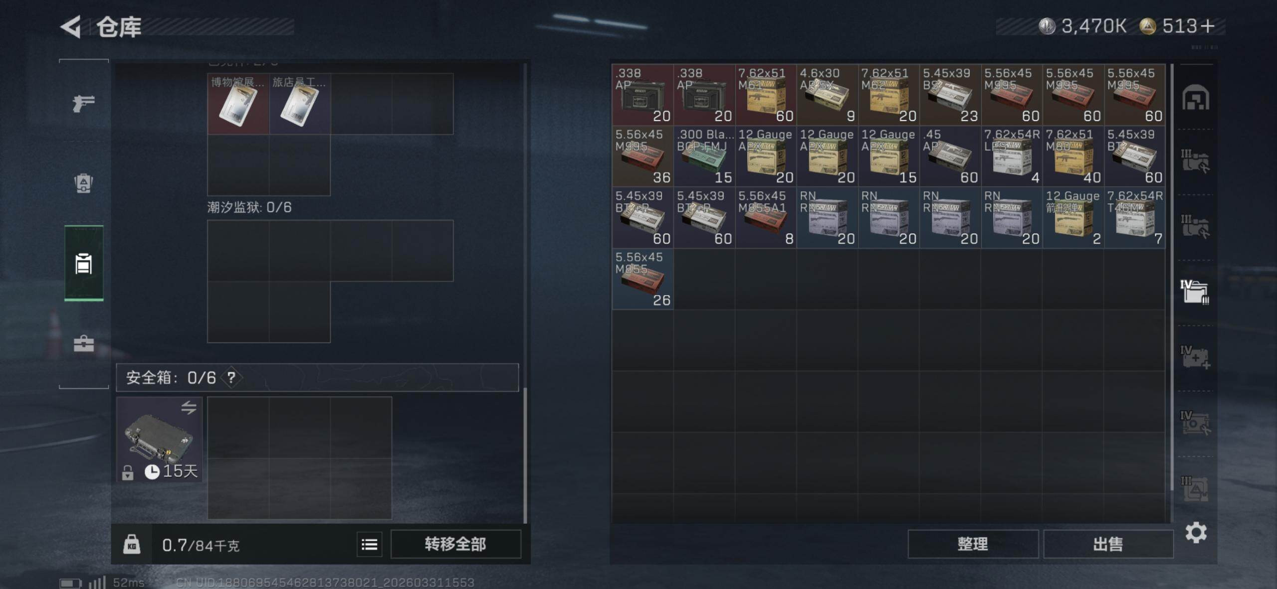 56.9m/信条/暗星/优品B品质粉色m7/优品s品质粉紫val/处刑者/蚀金玫瑰/凌霄戍卫/水墨云图/不羁人生/金牌射手/赛季6格已开/仓库多6套,56m总资产-3470k哈夫币-60烽火等级-铂金-22战场等级-军士长