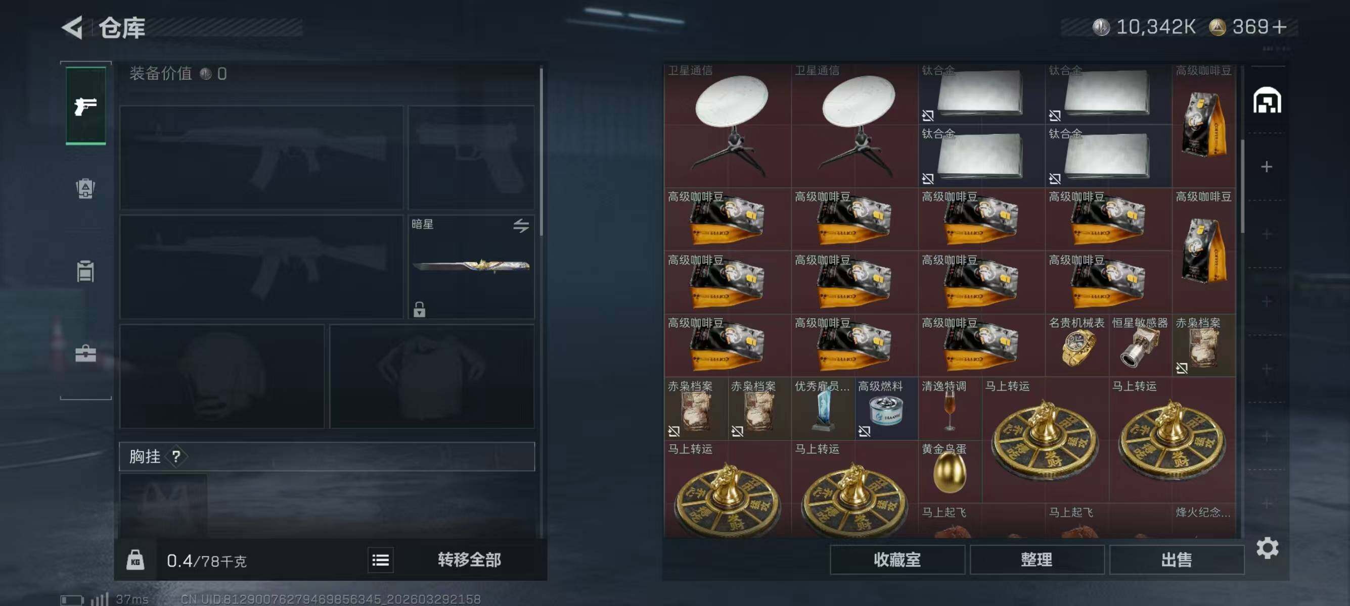 【SJZYT822】总资产(M):114M/哈夫币(K):10342K/哈夫币(K):10342K/传说枪皮数:33/全面战场等级:27_段位:上等兵/烽火地带等级:60_段位:钻石/蛊-能天使午夜邮差/骇爪-维什戴尔/红狼-电锯惊魂/露娜-金牌射手/乌鲁鲁-荒原猎手/近战-暗星/近战-信条/近战-黑鹰/MP7冲锋枪-电玩高手S2/MP7冲锋枪-电玩高手S2(优品A)/M4A1突击步枪-阿米娅/AKM突击步枪-锦绣/ASh-12战斗步枪-鹅鸭杀/AUG突击步枪-悠然茶歇/SG552突击步枪-运动