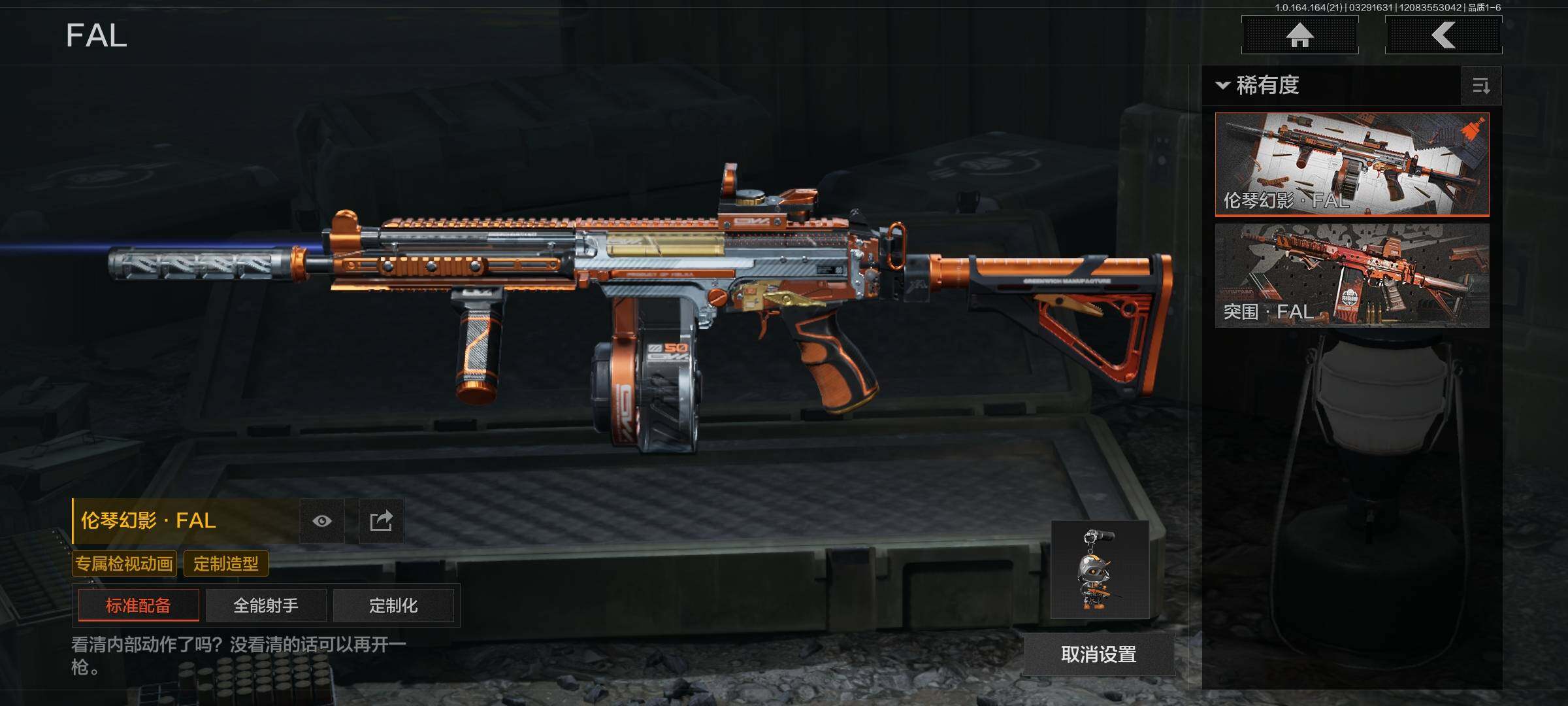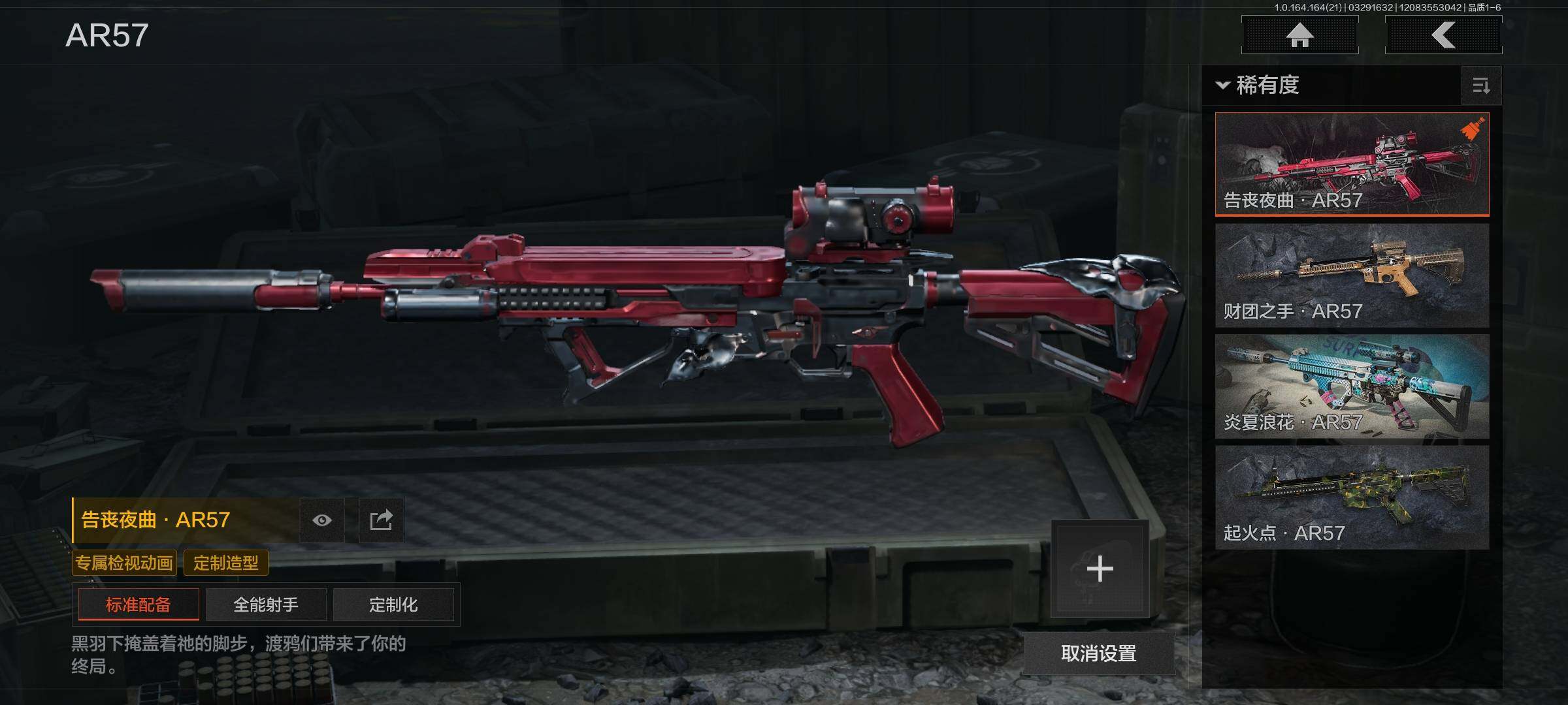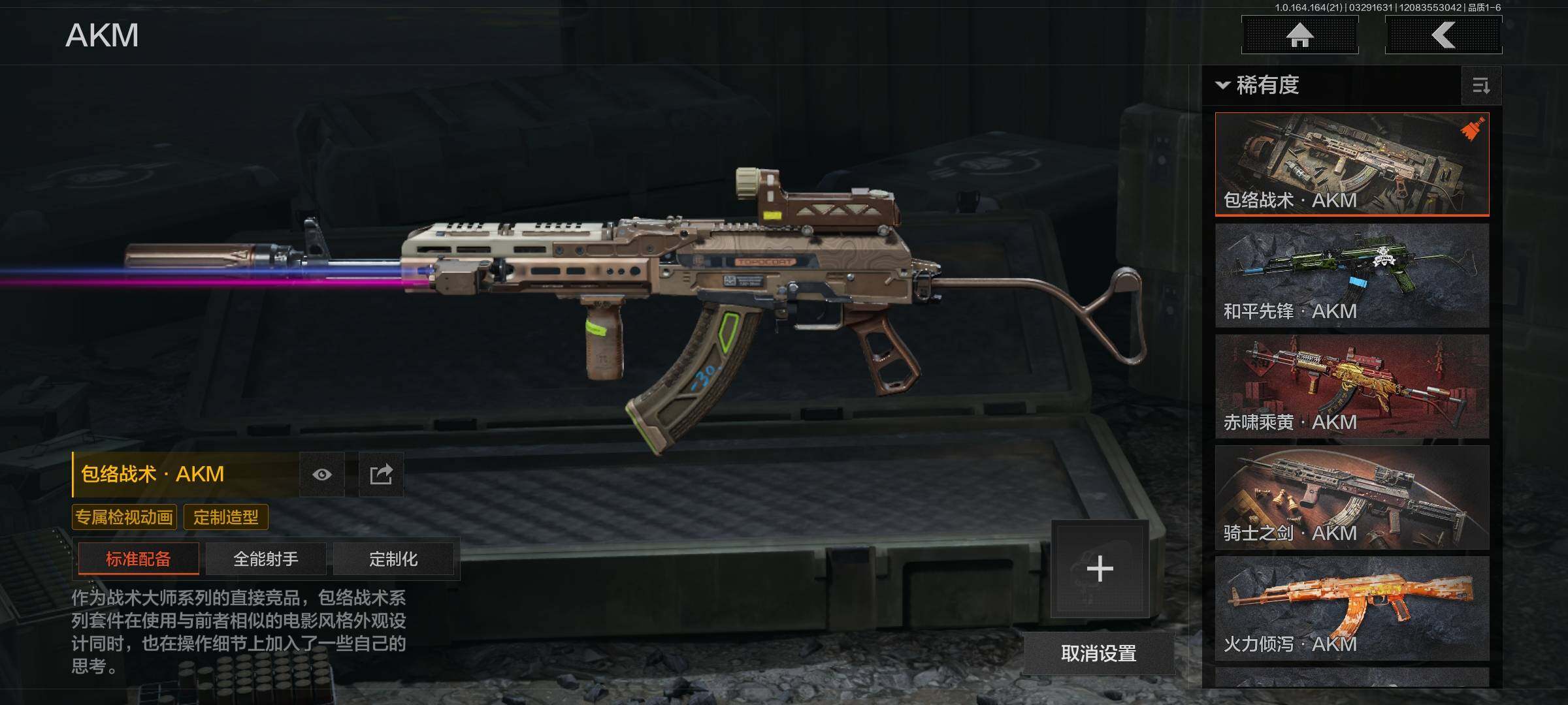 【金色枪皮】:包络战术AKM,伦琴幻影FAL,告丧夜曲AR57,战术大师AEK,旧王圣谕QBZ191,利齿风暴MPX,黑金弹头P90,旧王圣谕VSS