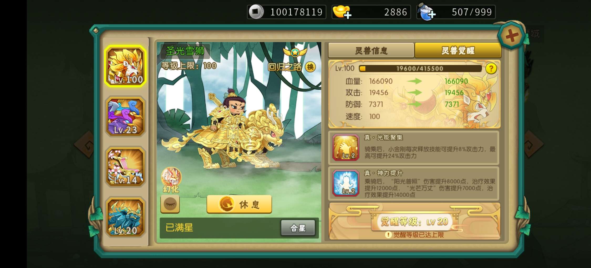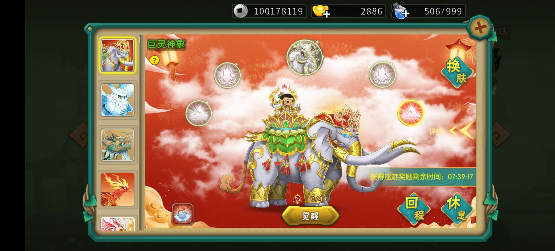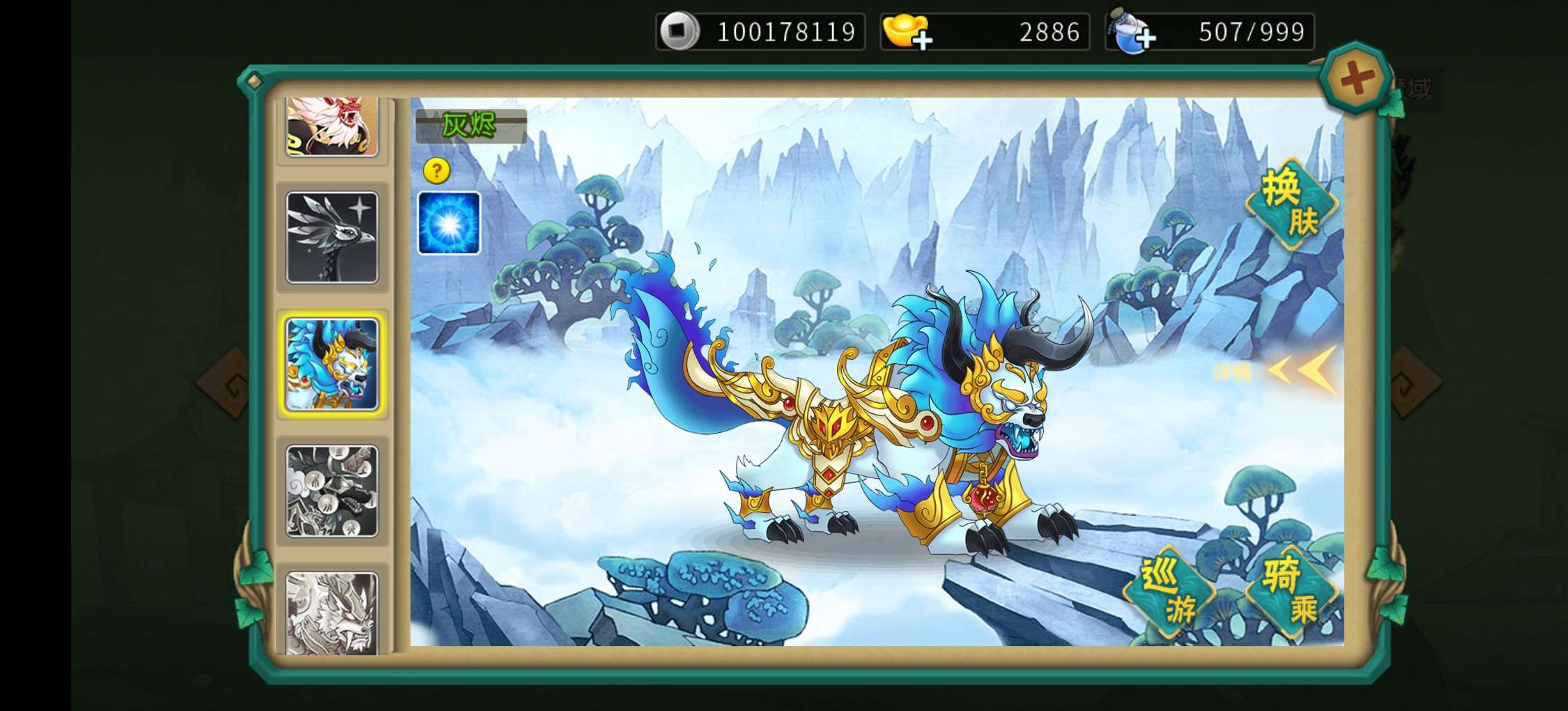 三阶鱼,二阶大象点亮一个小技能,二阶孟极一共十一个神兽有只大狗永久九鼎三档年卡最后一个月