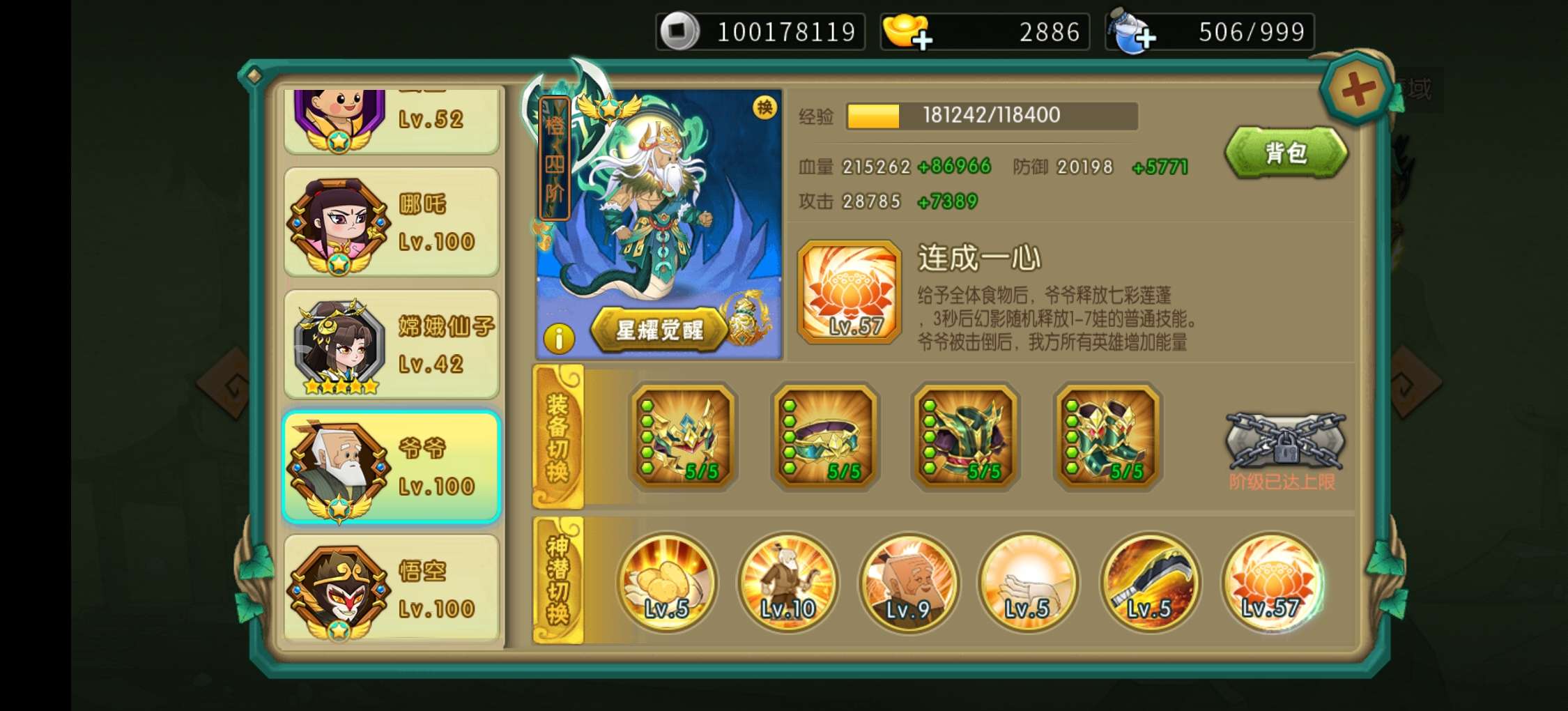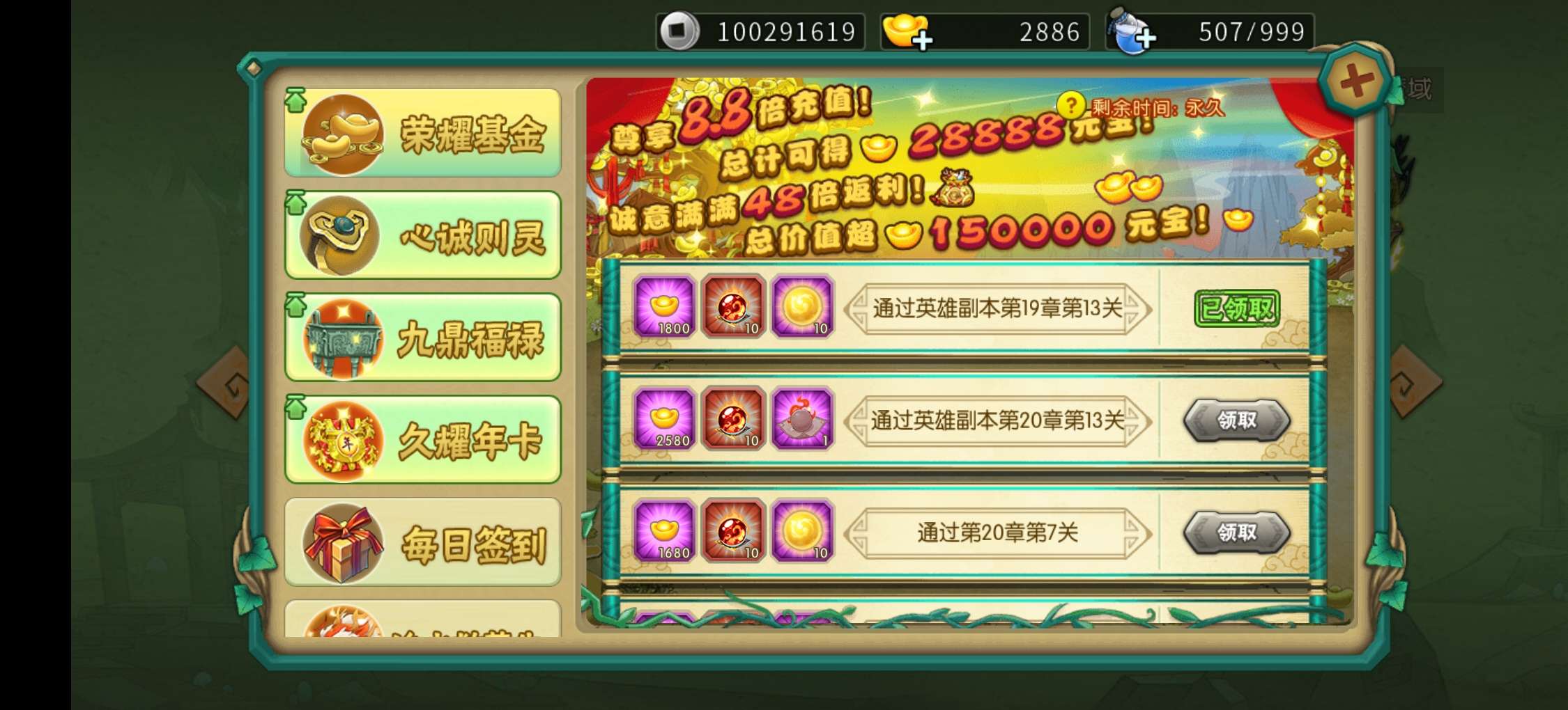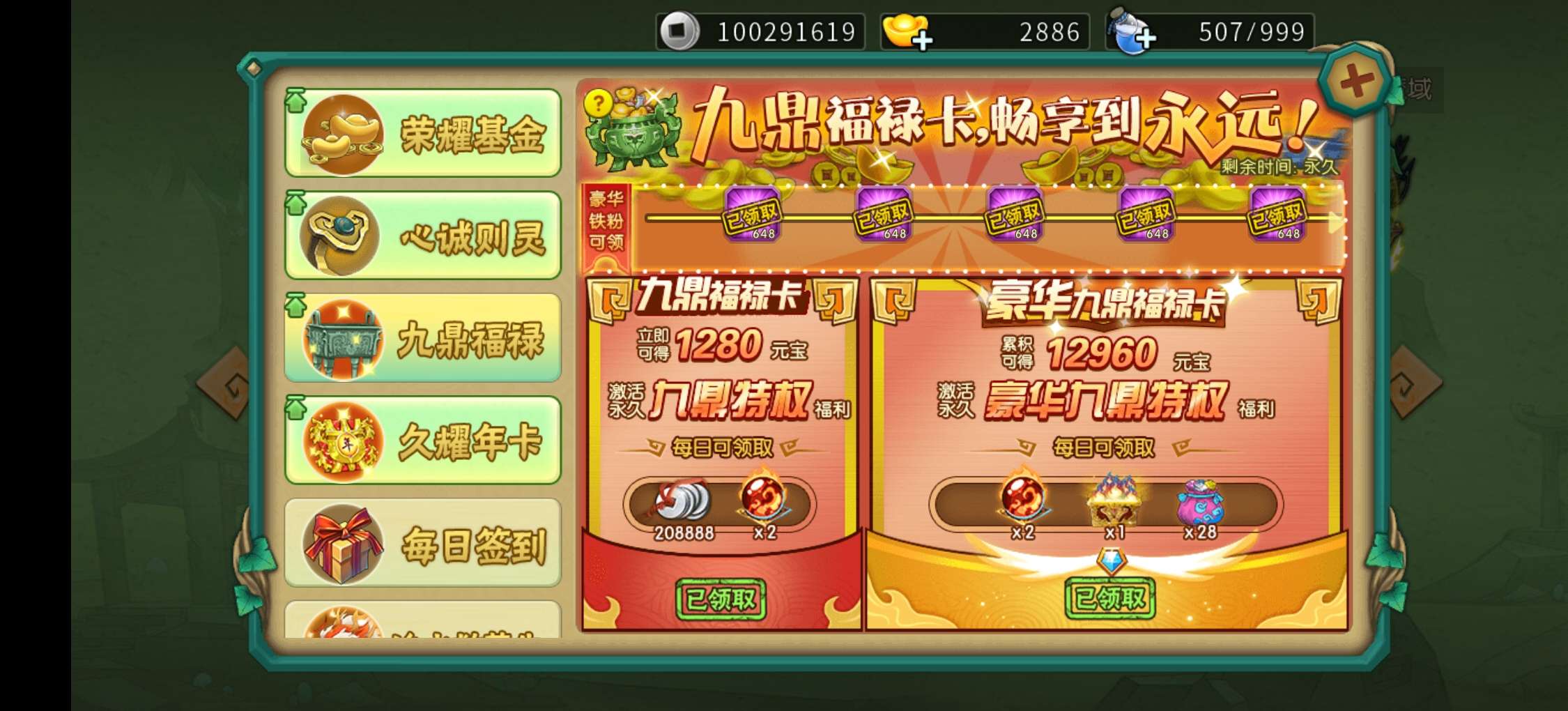 三阶鱼,二阶大象点亮一个小技能,二阶孟极一共十一个神兽有只大狗永久九鼎三档年卡最后一个月