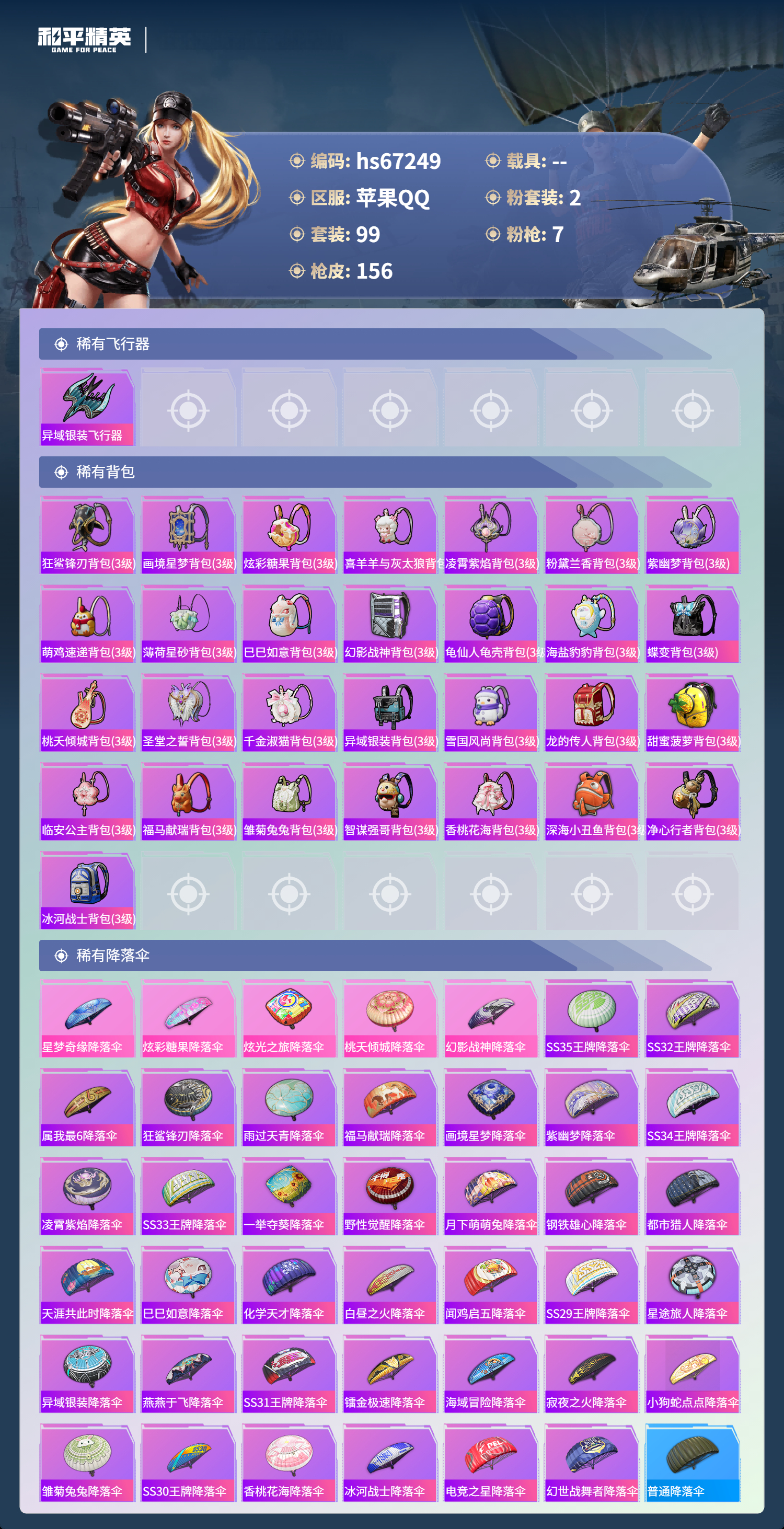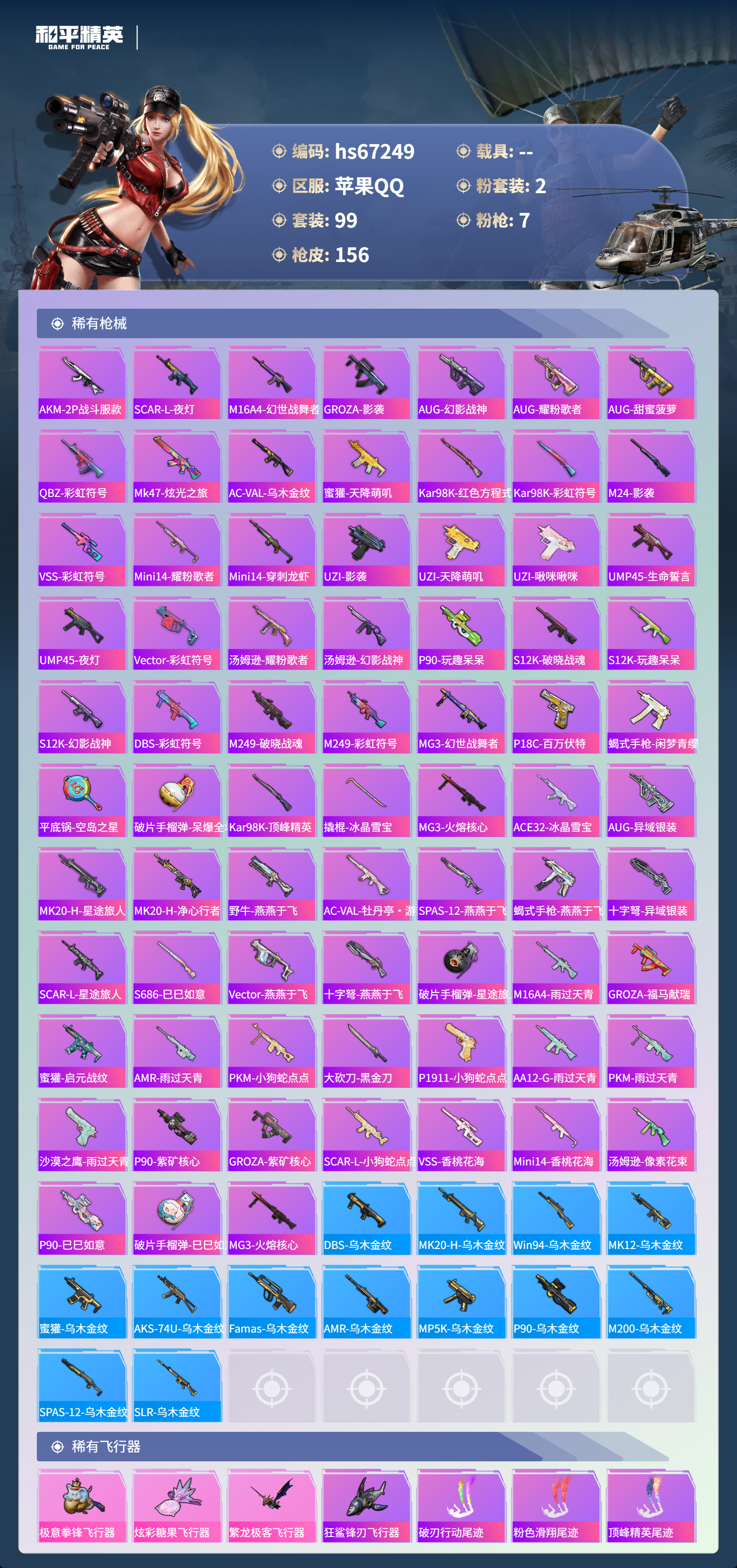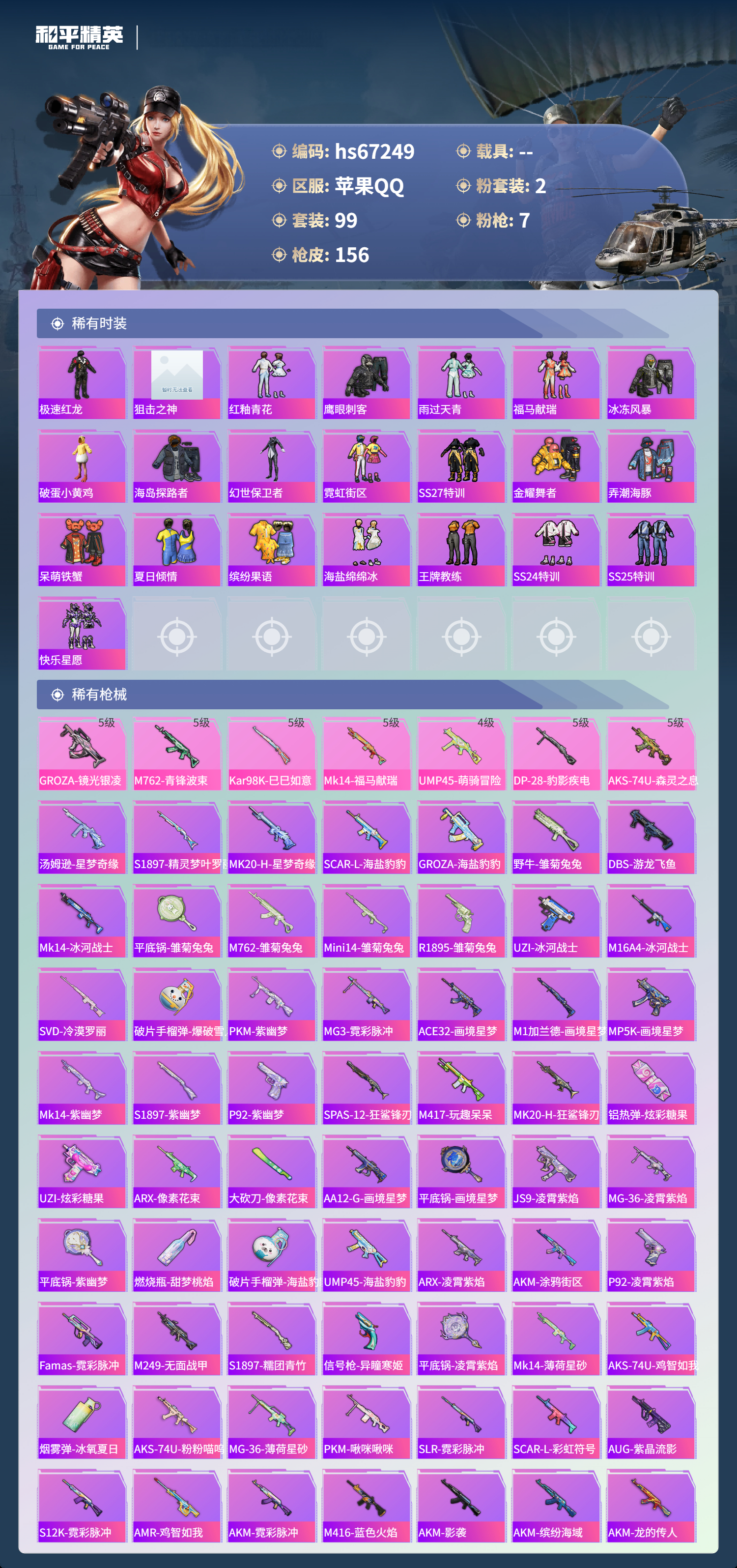 hs67249 苹果手Q-8王牌印记-2粉装-7特效枪-42822热力值-99套装-156枪皮-4卓越印记-2传奇印记