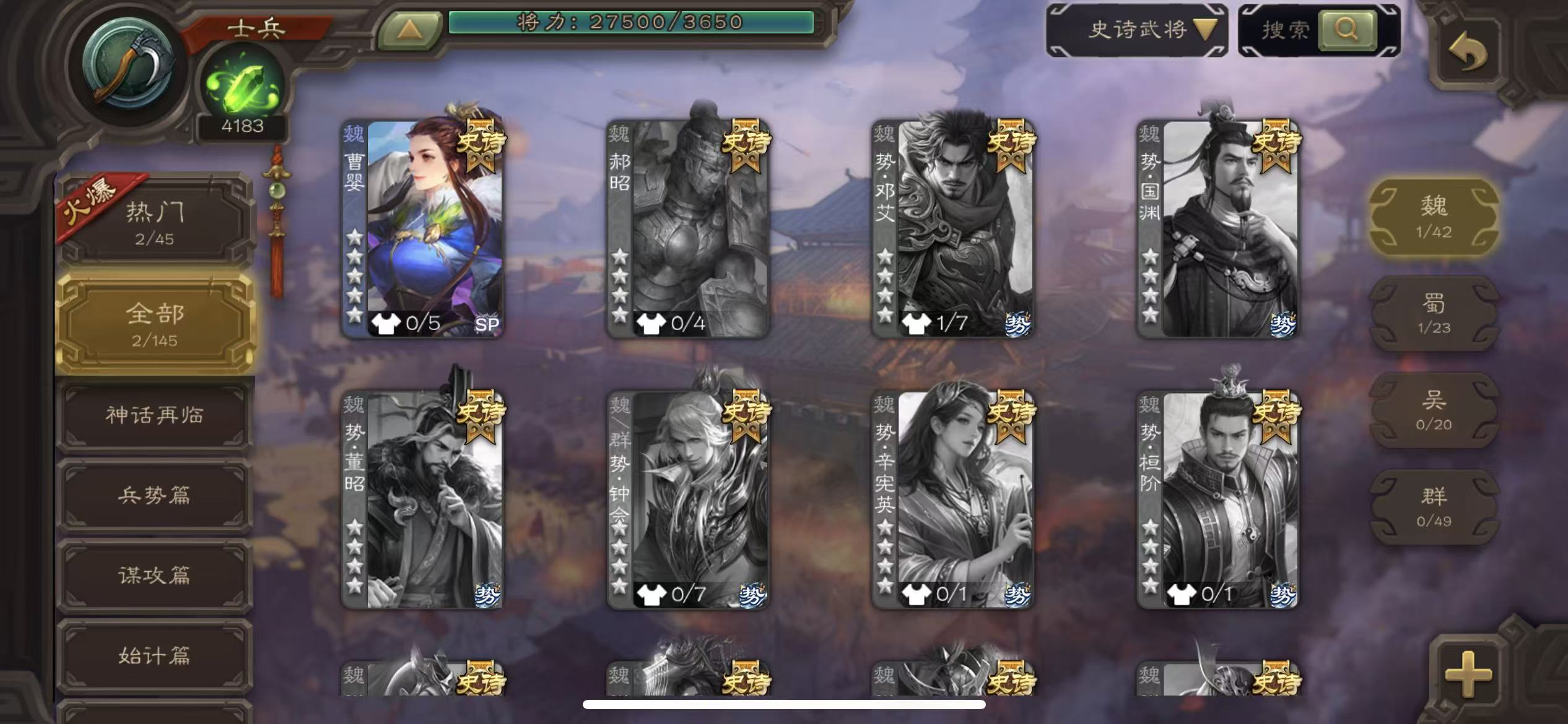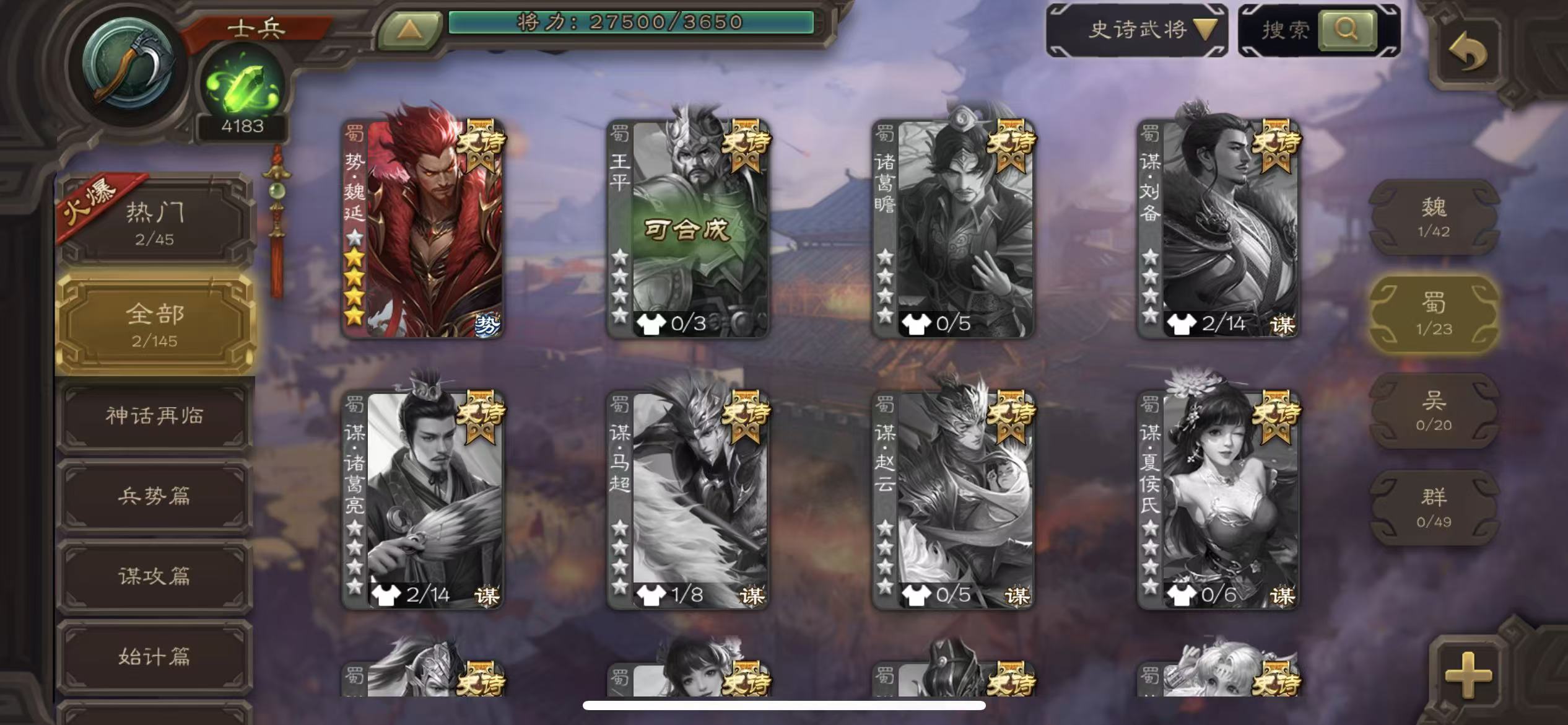 史诗武将数量: