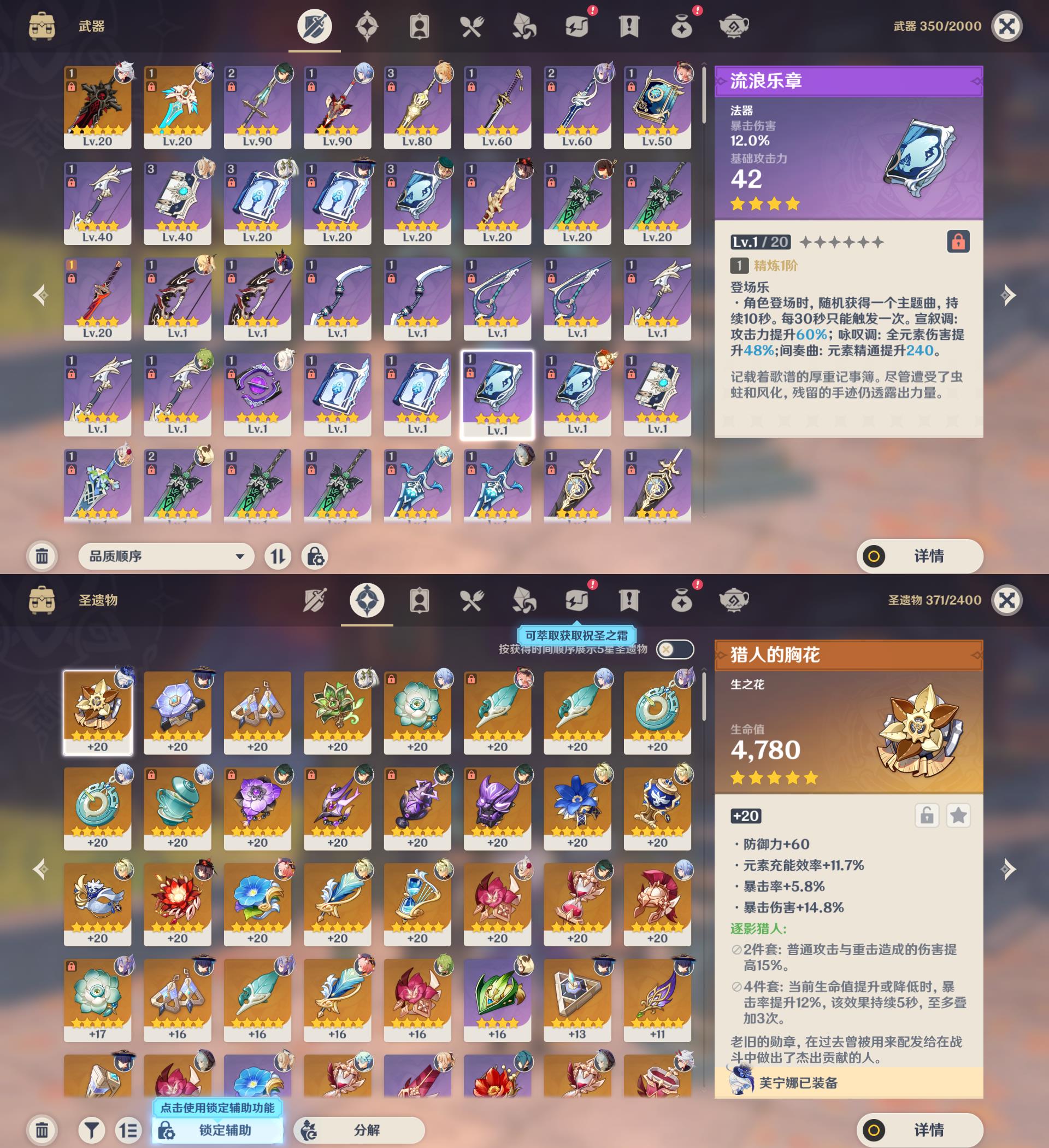 【YSN2491】56级/15黄/女主/11个五星角色/2个五星武器/魈/神里绫人/纳西妲/胡桃/刻晴/1命琴/1命七七/可莉/荒泷一斗/莫娜/芙宁娜/狼的末路/天空之刃