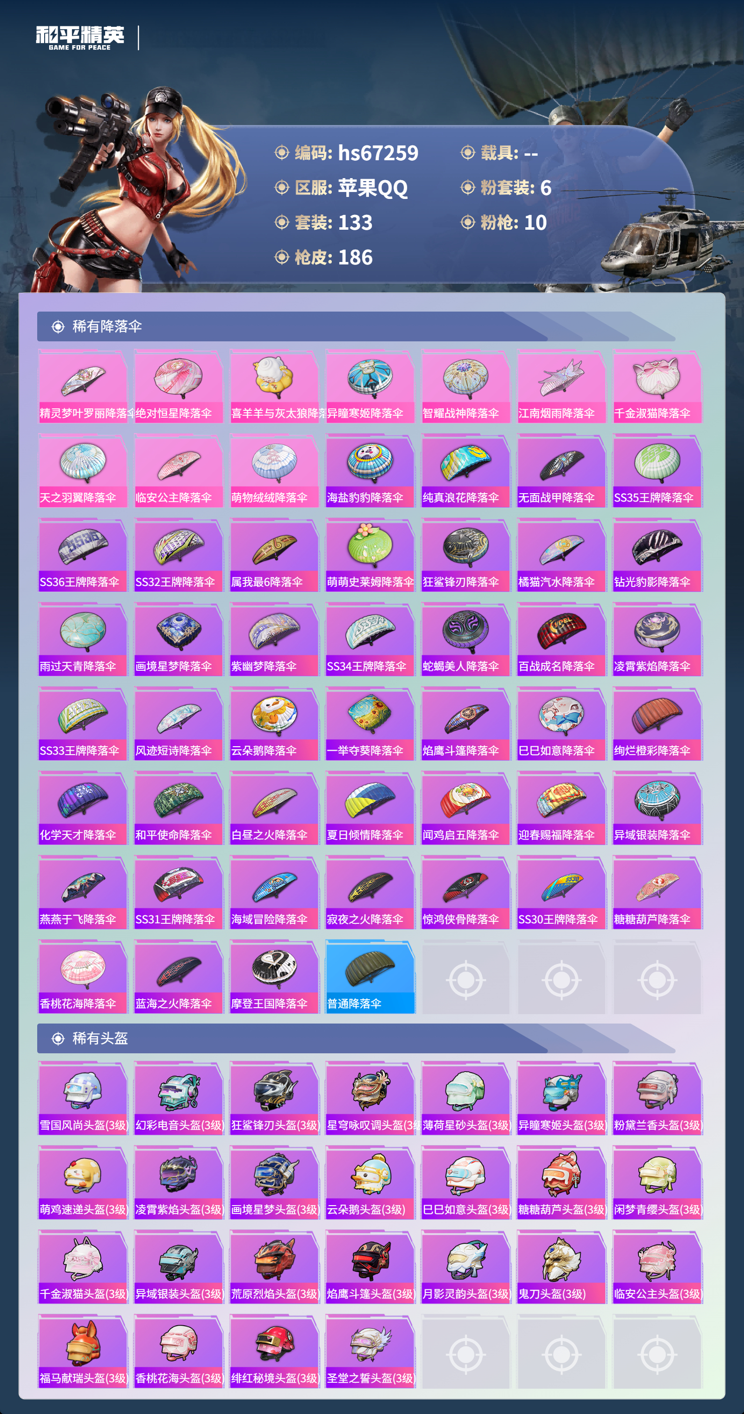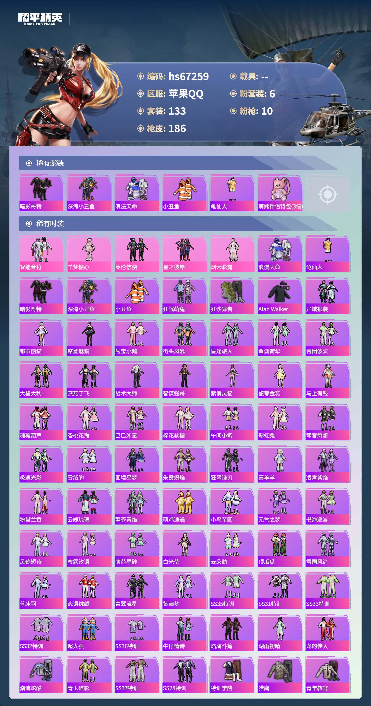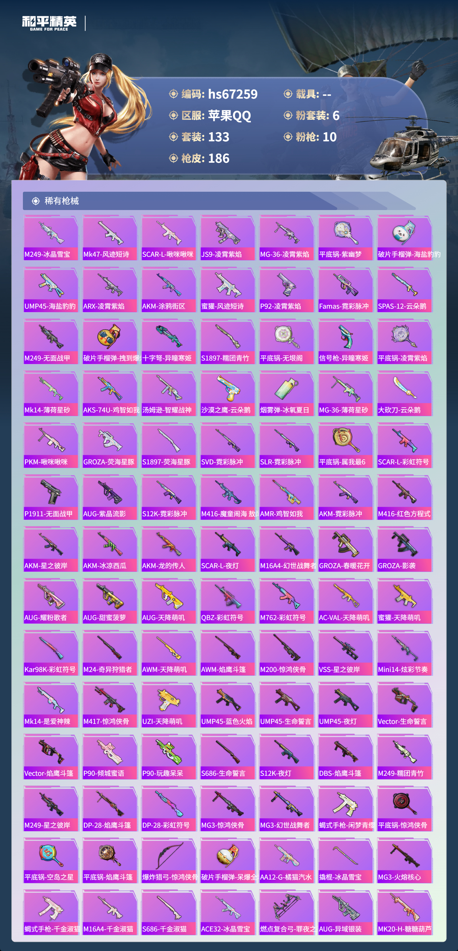 hs67259 苹果手Q-8王牌印记-6粉装-10特效枪-51580热力值-133套装-186枪皮-3卓越印记-1传奇印记