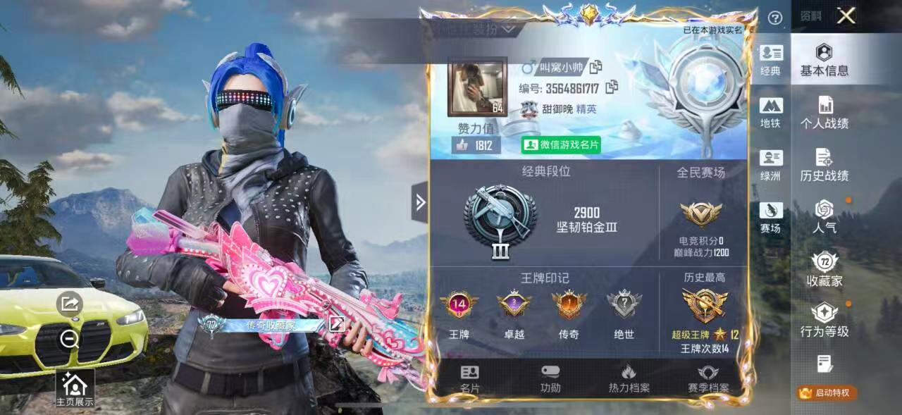 14王牌印记-6粉装-12特效枪-2载具-83831热力值-186套装-272枪皮-3卓越印记-1传奇印记