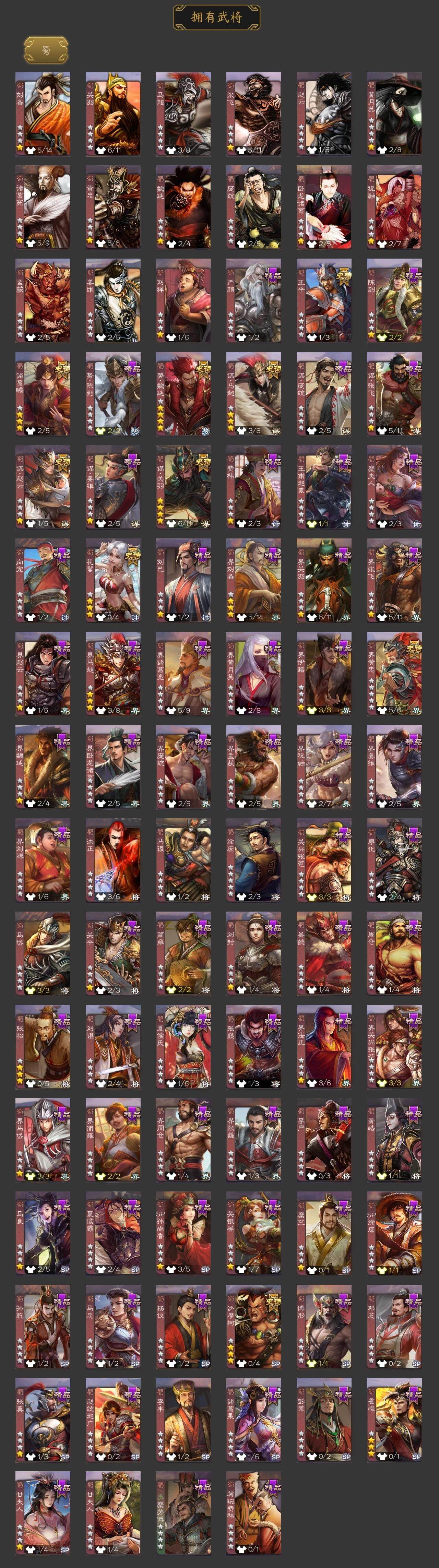 神吕布,神赵云,神陆逊,神刘备,神郭嘉,神诸葛亮,星周不疑,界钟会,界于禁,界曹真,曹婴,曹纯,程昱,谋赵云,谋马超,诸葛瞻,王平,沙摩柯,界黄忠,花鬘,谋关羽,势魏延,界朱然,界徐