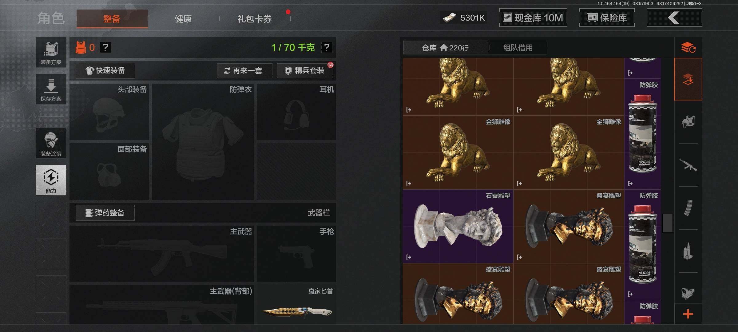 安卓QQ,3把手感不错的刀皮,4把金枪,1个金衣,仓库价值32.6M,科恩币5301K【勾选了部分装备-详情看图-】