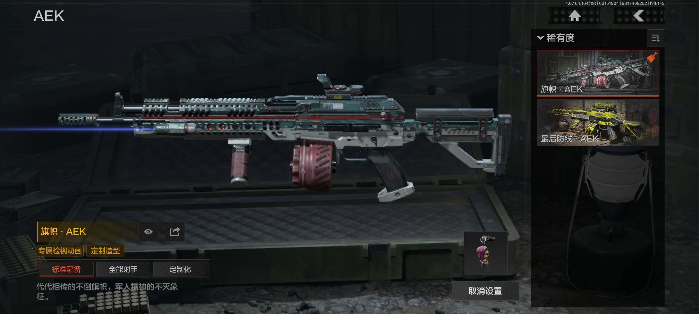 【金色枪皮】:告丧夜曲AR57,旗帜AEK,旧王圣谕QBZ191,伦琴幻影AX50