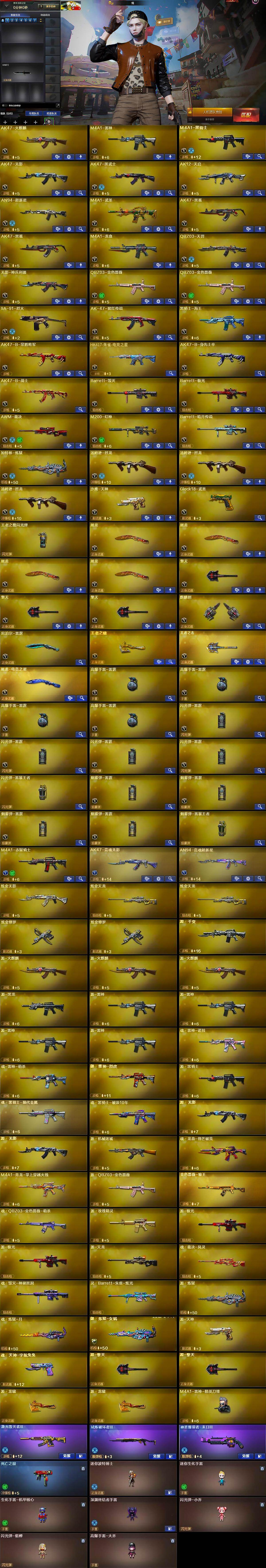 【热门武器】:QBZ03-金色蔷薇*2,M200-幻神,死亡之眼,M4A1-黑骑士,汤姆逊-烈龙*3,加特林-炼狱,羊驼玩偶
